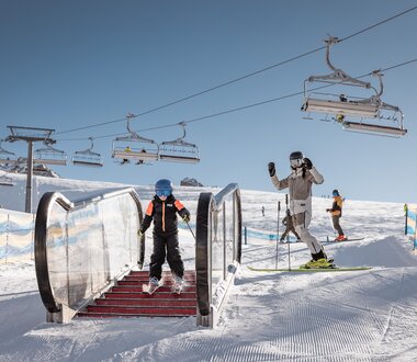 Für Einsteiger und Beginner gibt es im Goldpark Nauders die neue Snow-Base Bergkastel. Dieser öffentliche Bereich ist mit zwei hochmodernen, überdachten Förderbändern mit einer Länge von 45 Metern und 20 Metern ausgestattet. Auch Erwachsene, die zum ersten Mal auf Skiern unterwegs sind, können hier ihre ersten Bewegungen im Schnee meistern.