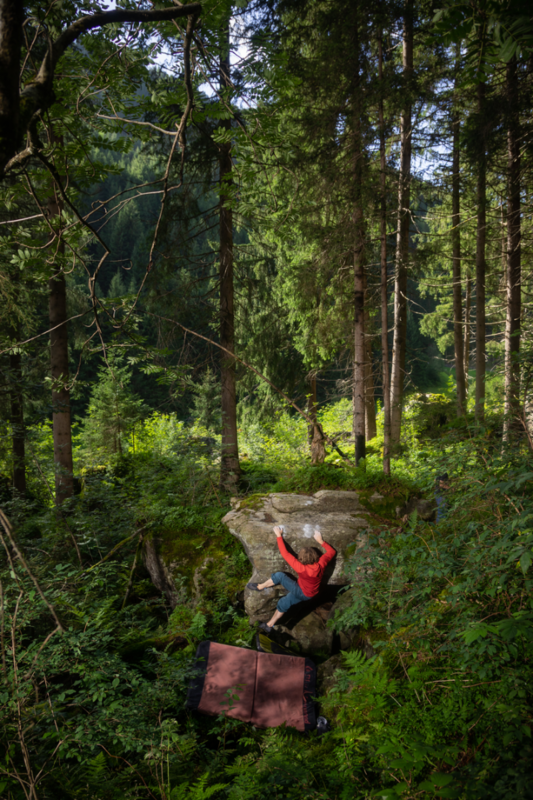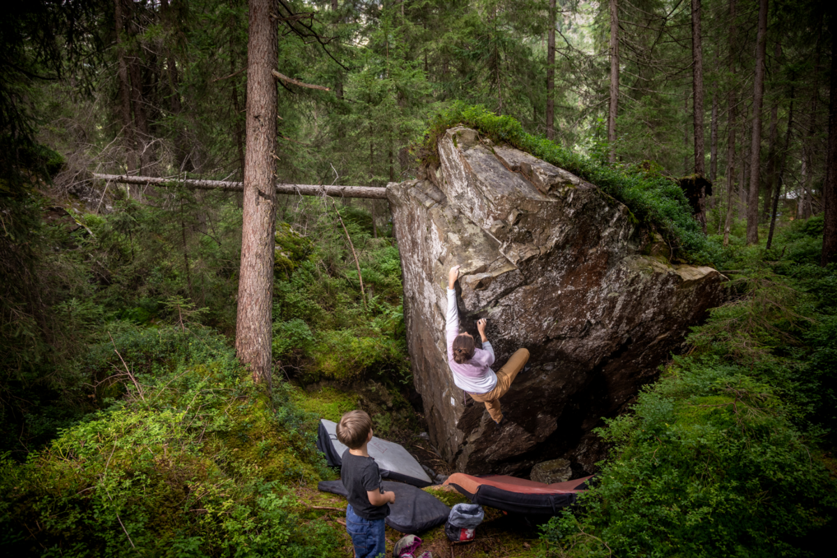 Das Bouldergebiet Höll befindet sich in sonniger Lage zwischen den Weilern Boden und Vergötschen. Es eignet sich ideal für Anfänger und Fortgeschrittene auch für Profis gibts es ein paar Schmankerl und einige offene Probleme die noch zum Knacken sind. Die über 140 Boulderprobleme mit einer Schwierigkeit von 4c - 8a+ verteilen sich auf 30 Granitblöcke. Die beste Zeit zum Kletten ist von Mai bis Oktober. Aufgrund der Lage auf 1.200 m eignen sich die Blöcke am Wandesrand bei kälternen Tagen und die im dichteren Wald für die wärmeren Tage. Der Zustiegt liegt je nach Block zwischen 1 und 5 Minuten.