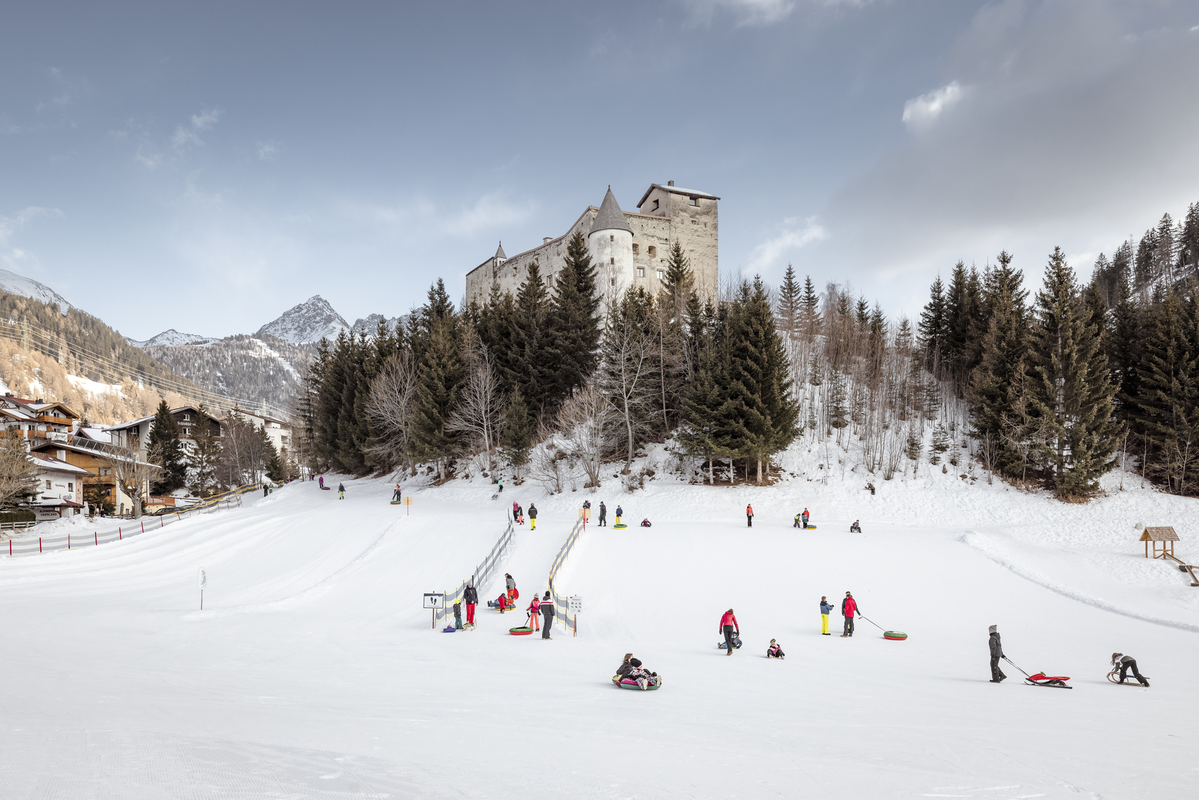 Eiskaltes Schneevergnügen für Groß und Klein warten in der Winter.Wunderwelt Nauders auf die ganze Familie. Auf einer mehr als 16.000 Quadratmeter großen Fläche mitten im Ort sorgen Attraktionen wie die riesige Natureislauffläche mit neu angelegtem Eishockeyfeld, eine Tubingbahn und eine Zipfelbobbahn für jede Menge Spaß, während Mama und Papa bei einem guten Glühwein die einmalige Atmosphäre unterhalb des beleuchteten Schloss Naudersberg genießen.