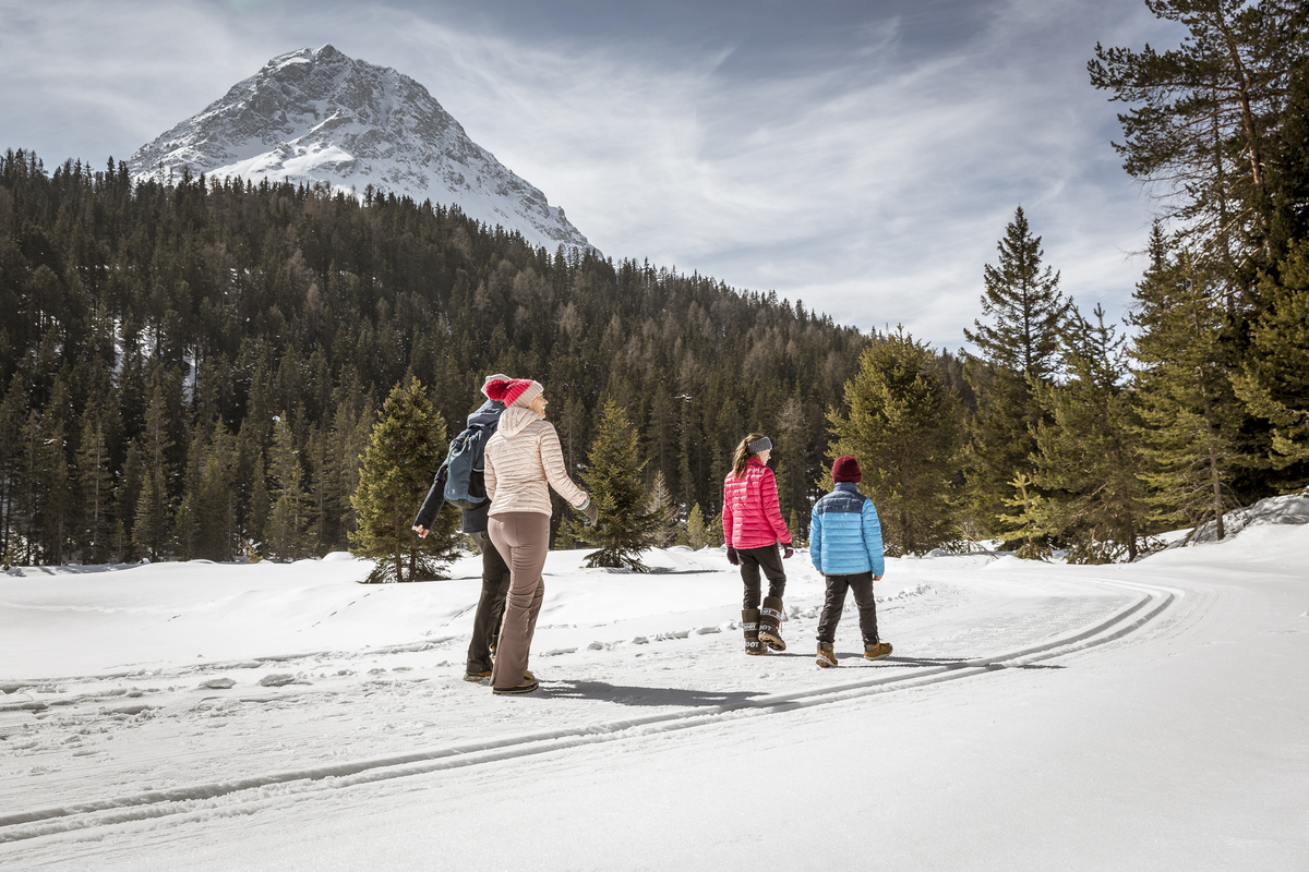 Entlang der romantischen Winterwanderwege inmitten einer unberührten Winterlandschaft bietet die Wintererlebniswelt am Mutzkopf vielfältige Möglichkeiten. Der tief verschneite Schwarz- und Grünsee inmitten einer malerischen Winterlandschaft verschprechen unvergessliche Winterimpressionen und sind das Highlight einer jeden Erkundungstour durch die Nauderer Bergwelt.