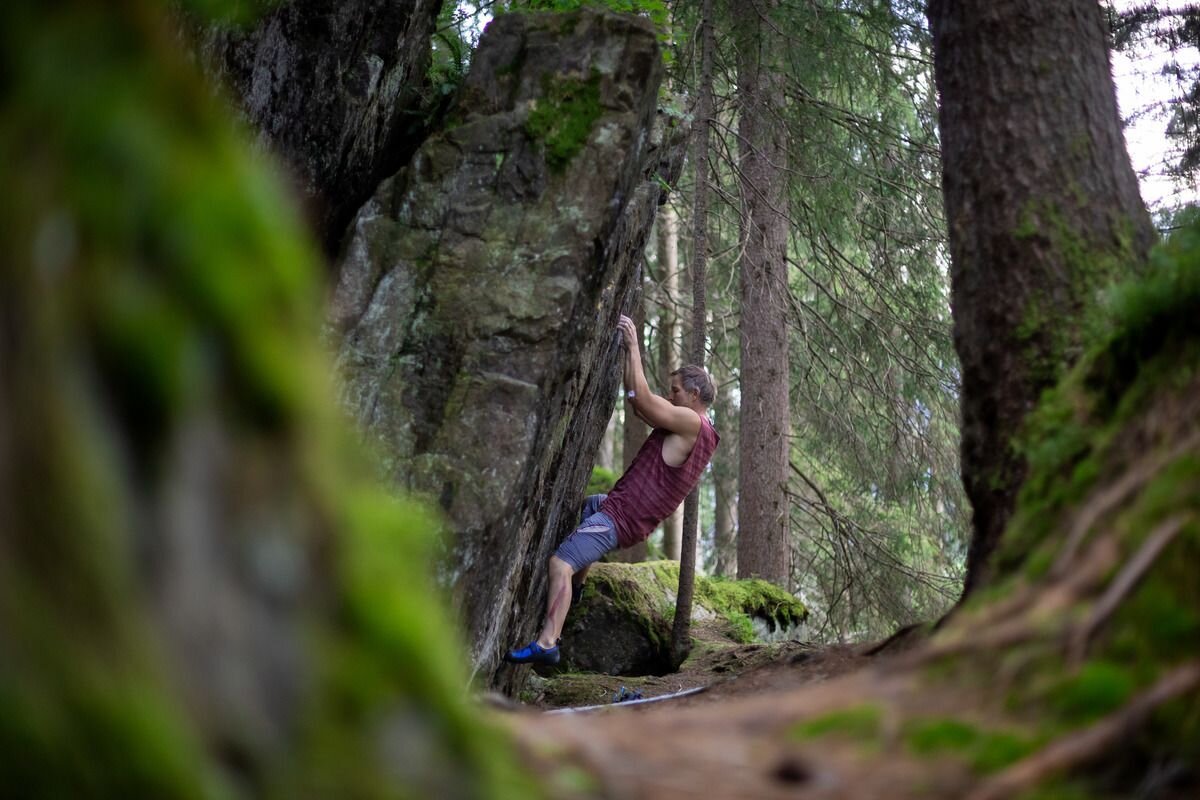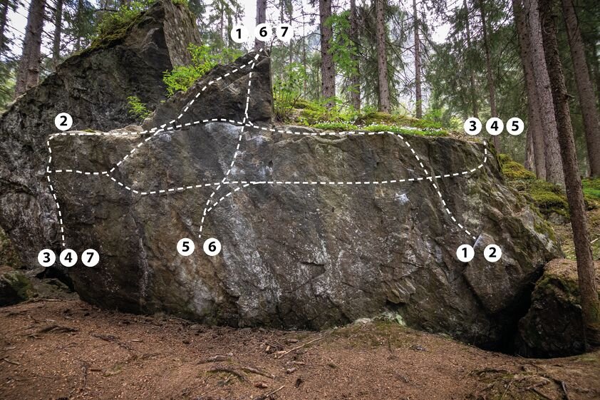Bei diesem Block bewältigt man 7 Boulderprobleme mit einer Schwierigkeit von 6b - 7b(+).