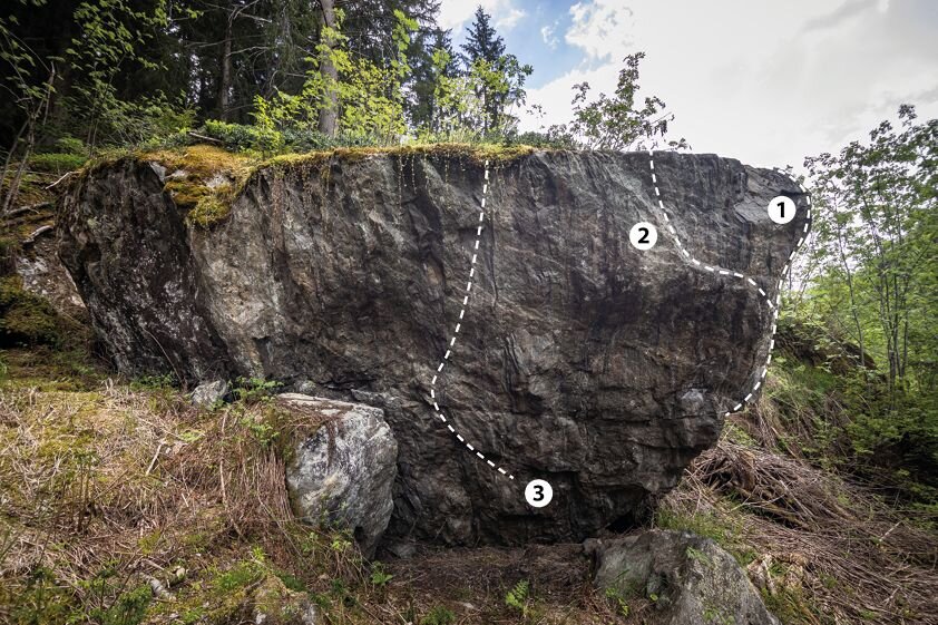 Bei diesem Block bewältigt man 3 Boulderprobleme mit einer Schwierigkeit von 6c - 6c+.