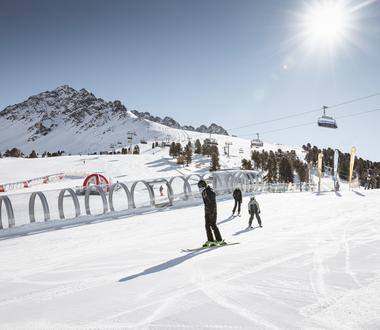 Eltern können die Zeit zu zweit auf der Piste genießen, während sich die Kids zum Beispiel im Nauderix Skikindergarten austoben, denn das gesamte Nauderixland bietet eine ganztägige Kinderbetreuung an.