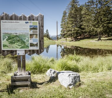 Ausgehend von der Norbertshöhe führt ein Familienwanderweg bis zum Waldspielplatz und Naturteich Mösle. Entlang des Wasserwaals geht es weiter bis zum Pflanzgarten. Klares Bergwasser plätschert durch den Waal. Er befeuchtet die Hänge, sorgt für saftig grüne Wiesen und speist den Naturteich Mösle.