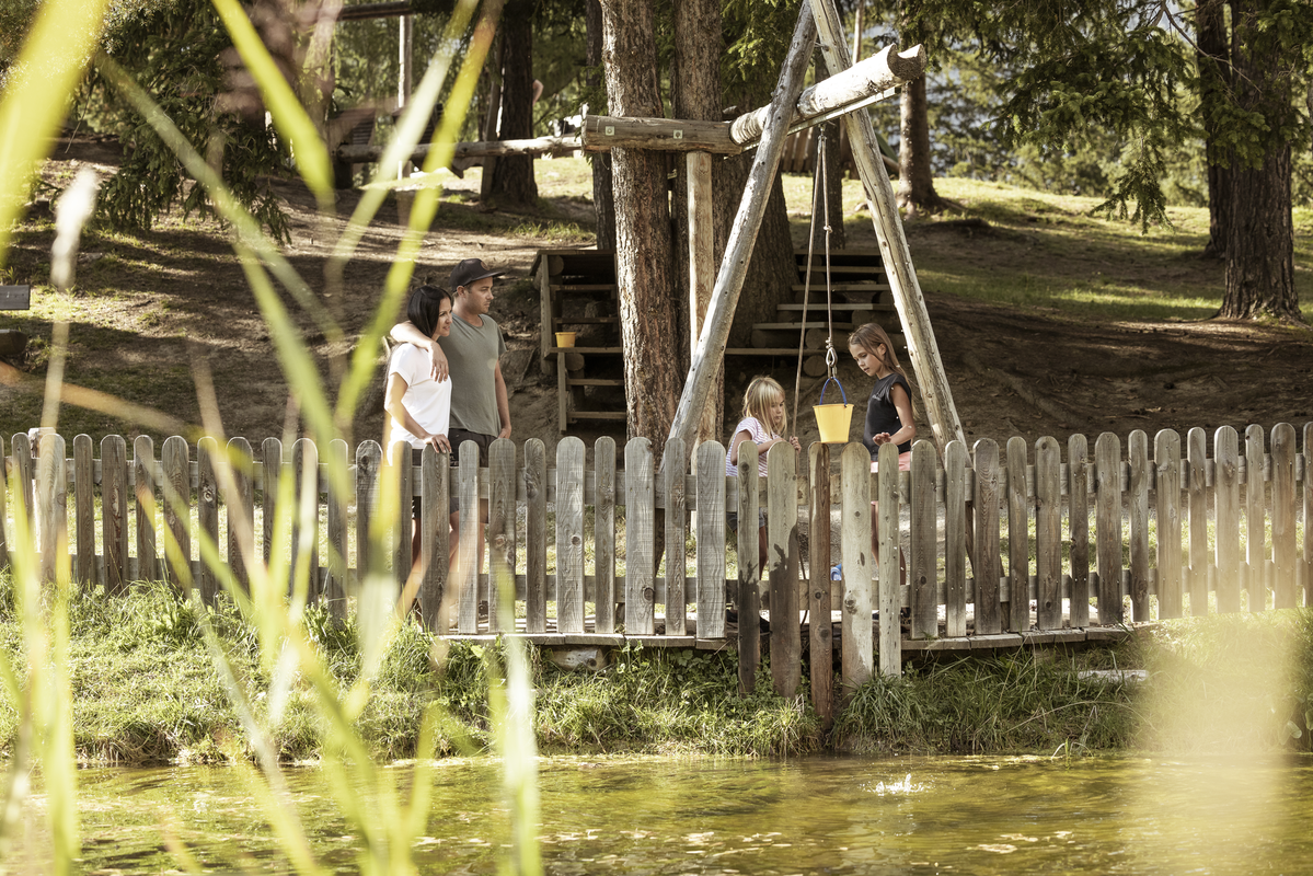 Naturburschen und -mädels erkunden spannende Spiel- und Kletterstationen, kinderwagentaugliche Spazierwege, den idyllischen Naturteich und Waalweg. Rasten und Genießen lässt es sich am ruhig gelegenen Grillplatz im Wald. Bäume, Pflanzen und Gewässer überraschen mit unvergesslichen Abenteuern.