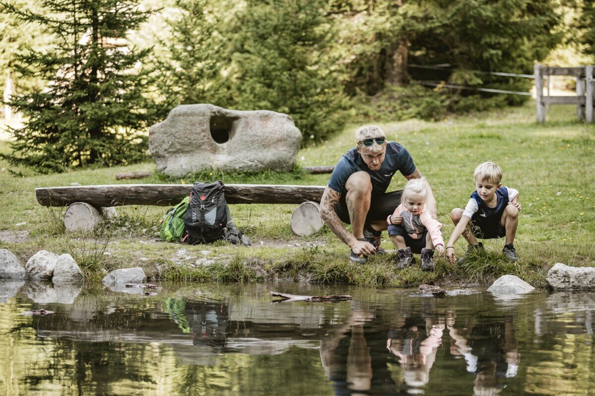 Ausgangspunkt der Wanderung ist der Parkplatz Wildmoos, den man von Pfunds aus über die Straße ins Radurschltal erreicht. Von dort führt der Weg Nr. 10 als schöne und einfache Höhenwanderung entlang des rauschenden Baches taleinwärts ins Radurschl. Der Weg verläuft rechts vor der Brücke und führt durch einen ruhigen Zirbenwald bis zum Skulpturenpark. Dieser lädt mit seinen Kunstwerken und Rastplätzen zu einer gemütlichen Pause ein und ist besonders für Familien ein schönes Ziel. Eine Einkehrmöglichkeit bietet außerdem die Radurschlalm. Der Rückweg erfolgt auf derselben Route zurück zum Parkplatz.