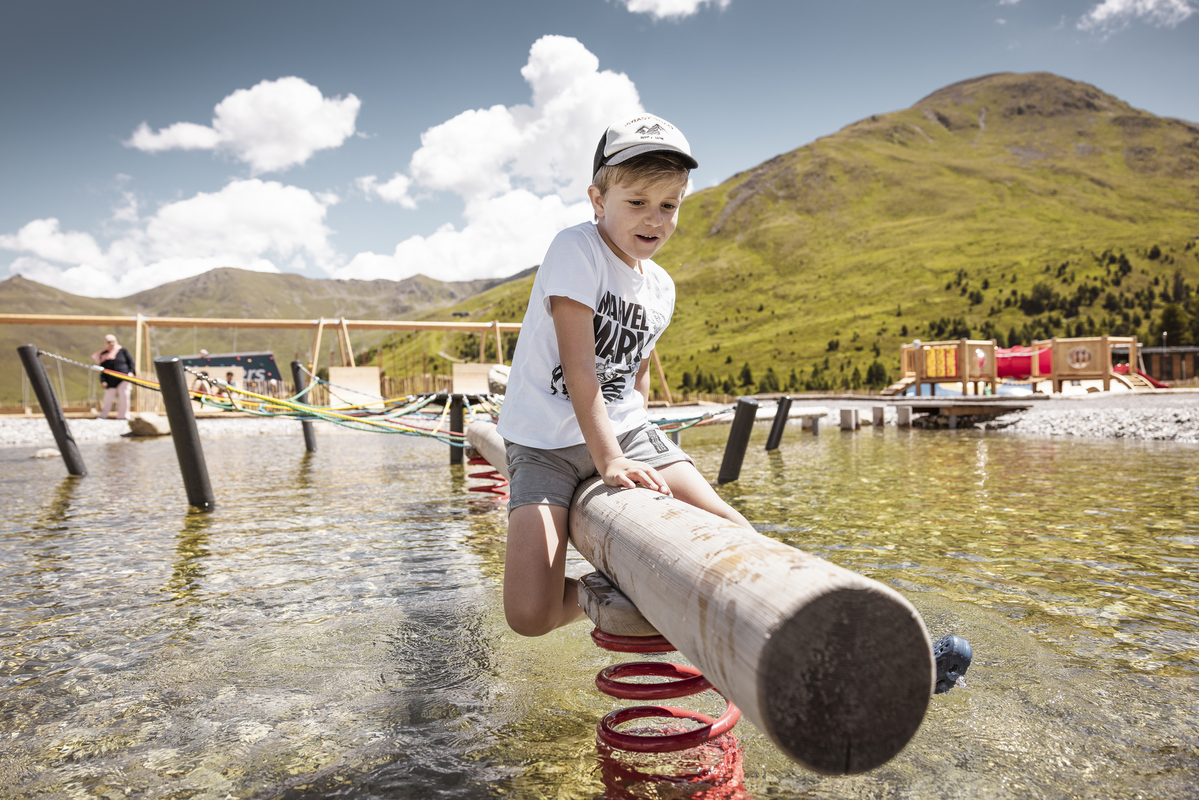 Denn am Goldpark direkt vor dem Panoramarestaurant Bergkastel in Nauders warten unvergessliche Abenteuer auf kleine und große Urlaubsgäste. Vom Goldwaschen bis zum Floß und von der Bike Base Bergkastel bis zur Riesensandkiste – oben am Berg sind die wahren Urlaubs-Höhepunkte zu Hause!