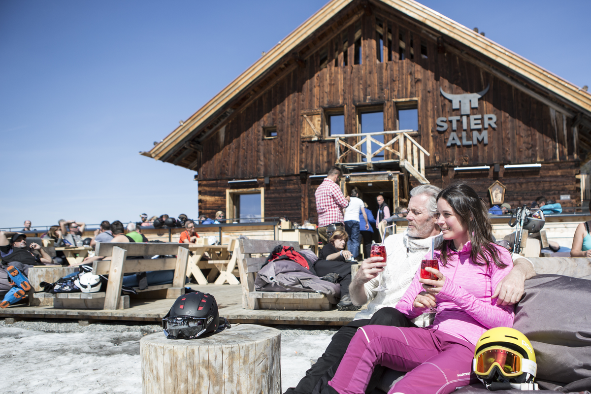 Die Lage mit perfekter Aussicht und rund 200 Sitzplätze im Innen- sowie 200 im Außenbereich garantieren einzigartiges Ambiente. Trotz Neubau blieb der Hüttencharakter erhalten, die Alm verfügt aber jetzt über jeglichen zeitgemäßen Komfort. Angenehmer Nebeneffekt für Wintersportler: Im Bereich der Almabfahrt schafft die neue Stieralm zusätzliche Pistenflächen im Ausmaß von vier Kilometern.