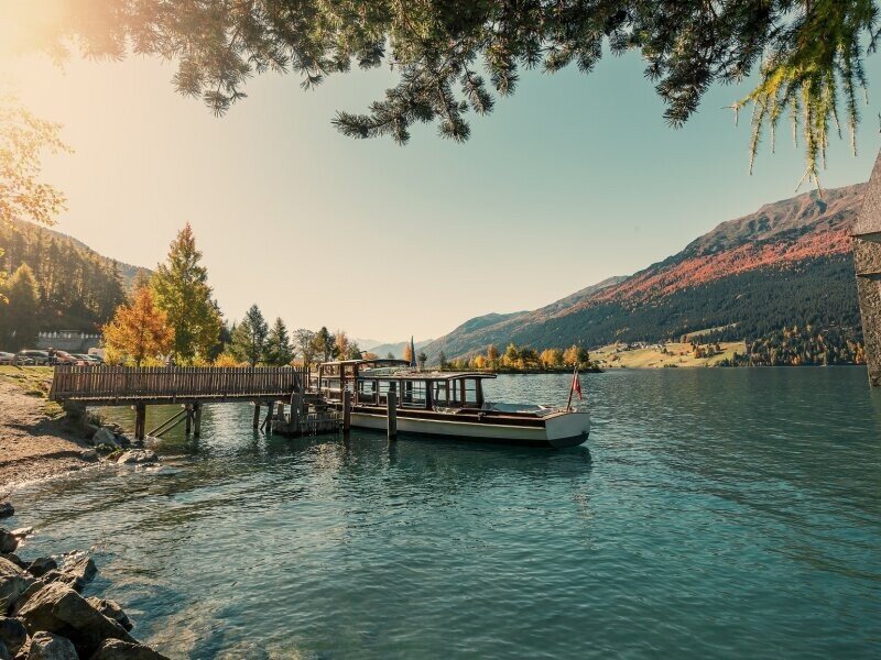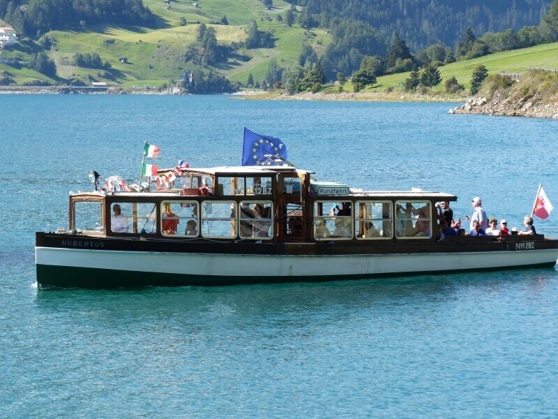 Für alle jene, die das Seenplateau Reschenpass vom Wasser aus erleben möchten: Eine Schifffahrt auf dem Reschensee mit der MS Hubertus Interregio ist ein ganz besonderes landschaftliches und kulturelles Erlebnis. Während der Schifffahrt erzählt Kapitän Winkler die Geschichte der in den Fluten versunkenen Dörfer Graun, Reschen und Arlund. Ab Mitte Juli (sofern genug Wasser im See ist) bis Oktober sticht die MS Hubertus täglich in See.