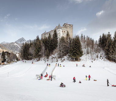 Während Mama und Papa bei einem guten Glühwein und Musik die einmalige Atmosphäre unterhalb des beleuchteten Schloss Naudersberg genießen haben die Kids Spaß beim Eislaufen, oder auf den Rodelbahnen.