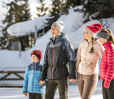 Nicht nur auf der Bergkastelrodelbahn geht es den Berg hinunter. Die alternative Abfahrt von der Lärchenalm ist zudem auch donnerstags abends beleuchtet und schlängelt sich vier Kilometer lang durch die glitzernde Winterwelt ins Tal.