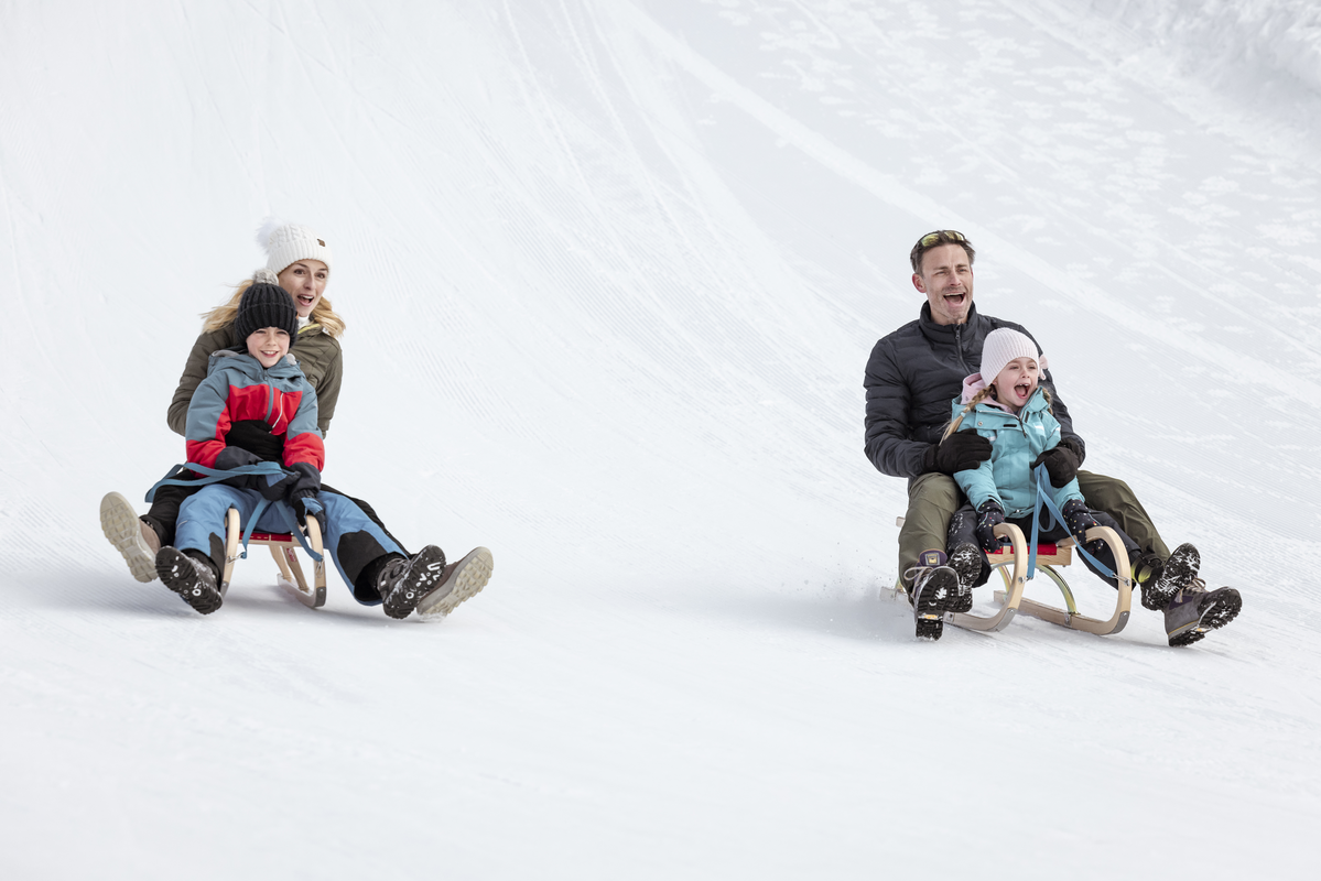 Auf den Rodelbahnen, "Tubing-" und "Zipfelbobbahnen" in der Winterwunderwelt Nauders können auch kleine Rodelfans ihre ersten Fahrten wagen und jede Menge Spaß und Action im Schnee erleben!