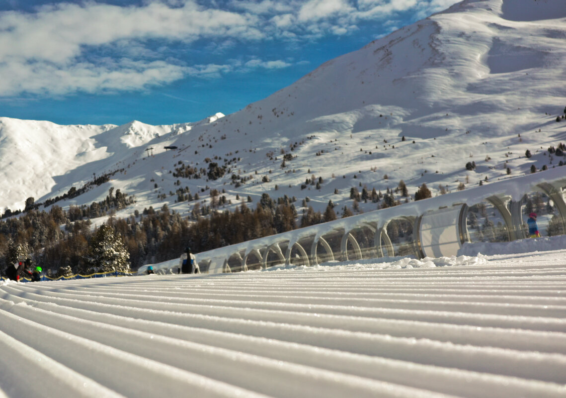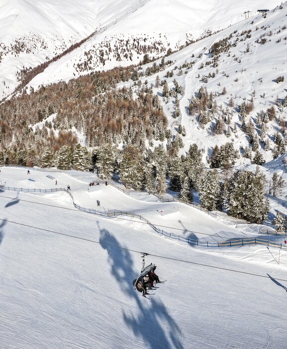 Das Skiareal Goldpark mit der neuen Goldseebahn, der neuen Goldseepiste und der Snow-Base Bergkastel bilden das Herz des Skigebietes Nauders am Reschenpass.