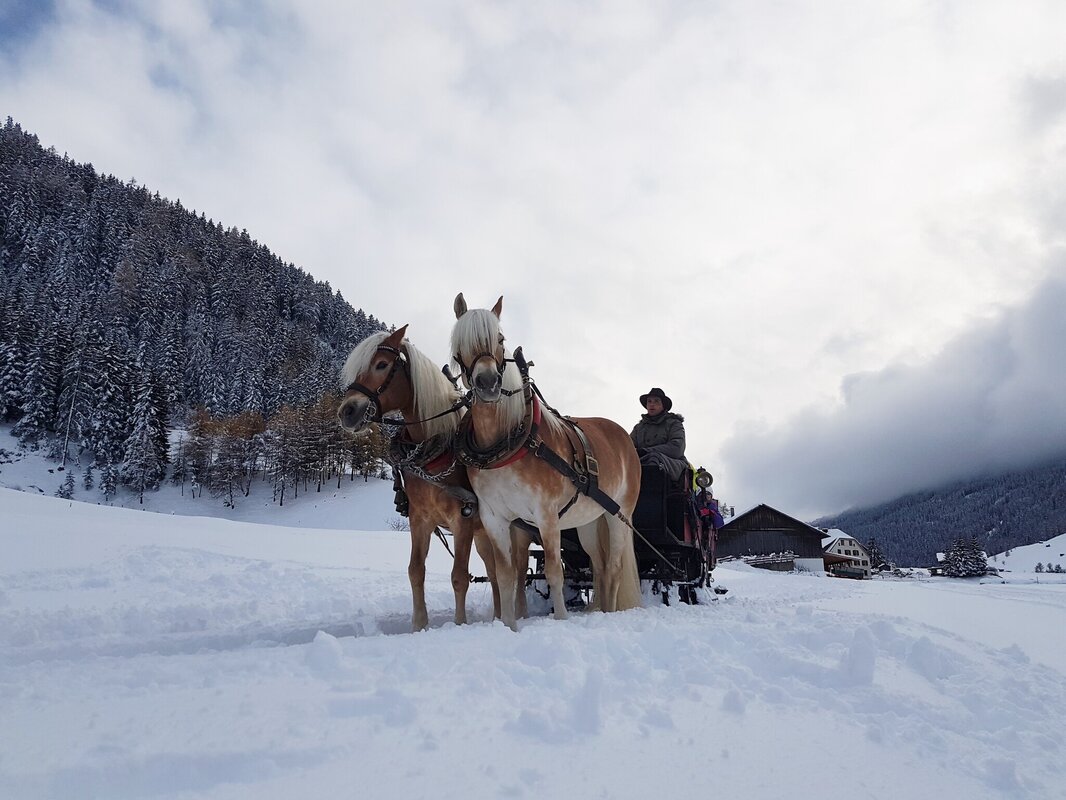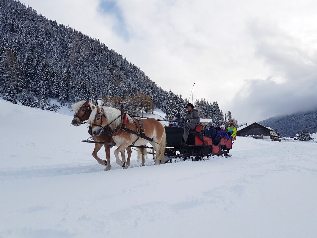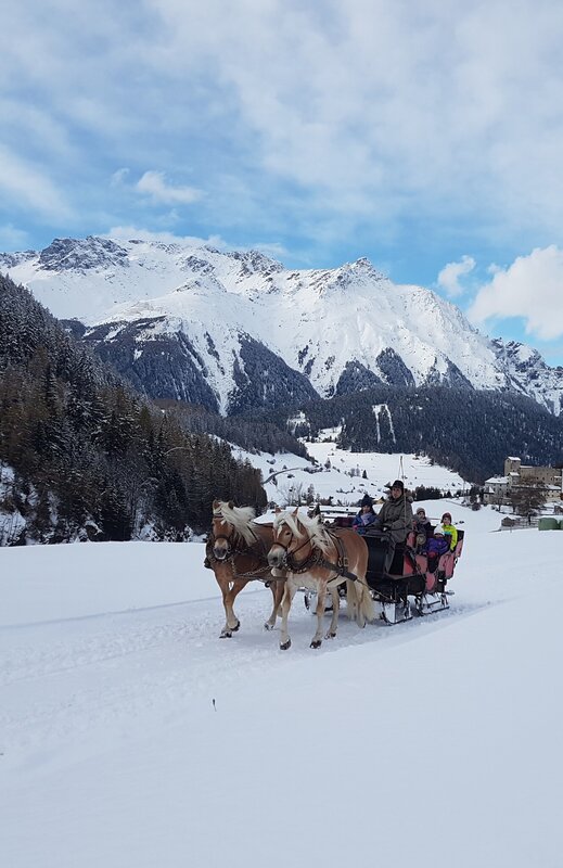 Gezogen von zwei starken Pferden können Sie so die Landschaft rund um Nauders bewundern. Ob im Sommer mit der Kutsche, begleitet von klappernden Hufen, oder im Winter mit dem Schlitten, gemütlich eingepackt in warme Decken und verzaubert vom Klang der Glocken durch den Schnee gleiten. Ein besonderes Highlight sind unsere Nachtschlittenfahrten.