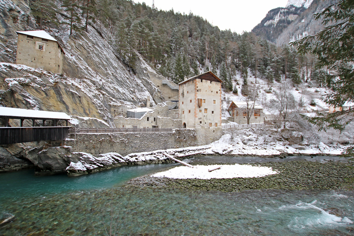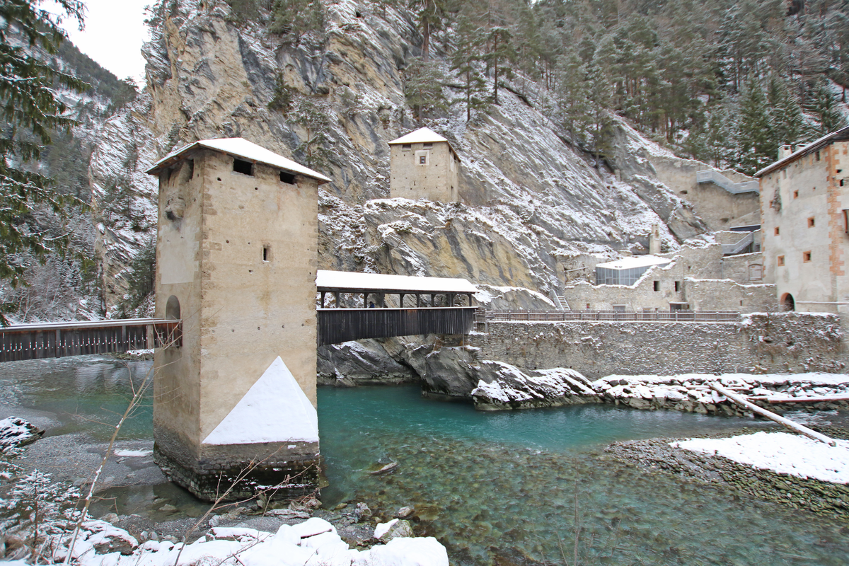 Finster? das war einmal. Durch sorgfältige Restaurierung präsentiert sich die ehemalige Grenz- und Zollstation als schmuckes und interessantes Denkmal des "dunklen" Mittelalters, das alle Besucher staunen lässt. Im Sommer geöffnet, im Winter einmal wöchentlich. Dank der neuen Radbrücke barrierefrei über den Rad- bzw. Wanderweg erreichbar.