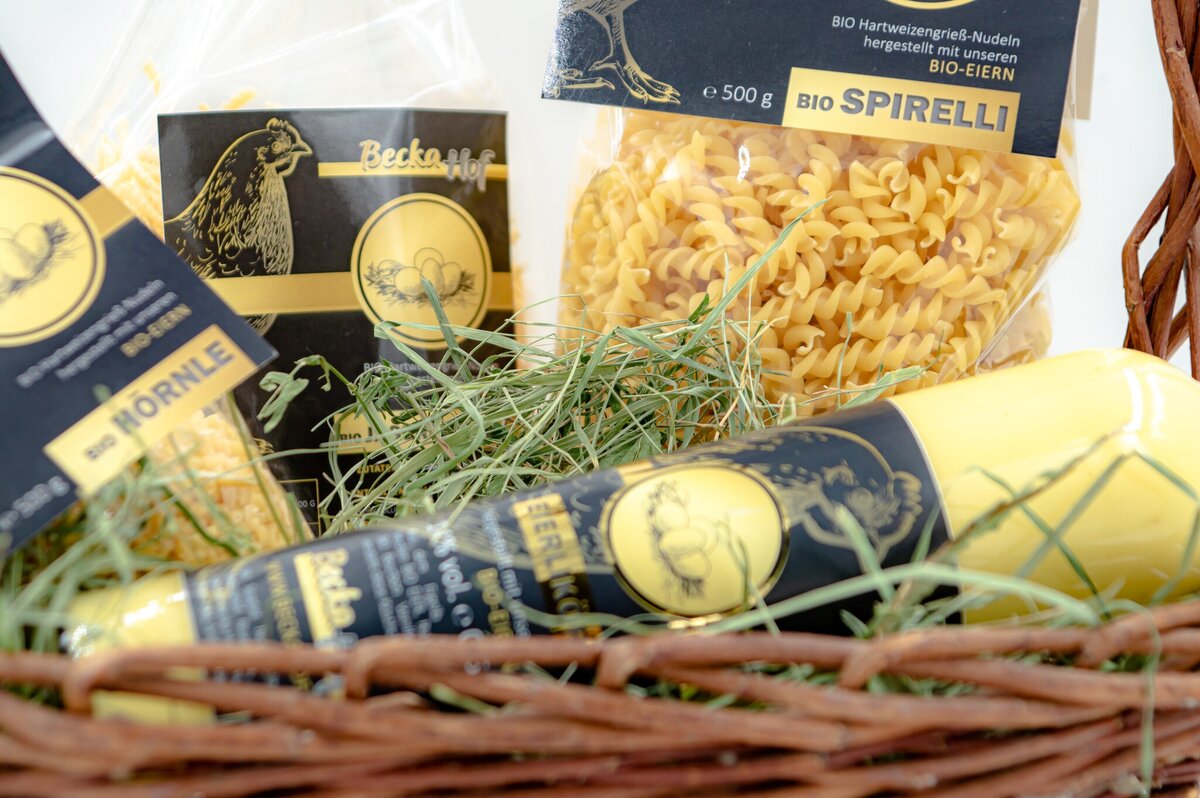 So schmeckt BIO - Kommen Sie vorbei und lassen Sie sich überraschen. In unserem hauseigenen Hofladen finden Sie natürliche Produkte aus der Landwirtschaft. Angefangen von täglichen frischen BIO Eiern bis hin zu einer Vielzahl an diversen BIO Nudel Sorten gemacht aus unseren Eiern, leckeren Eierlikör, verschiedene Wurstsorten von unseren Jahrlingsfleisch.