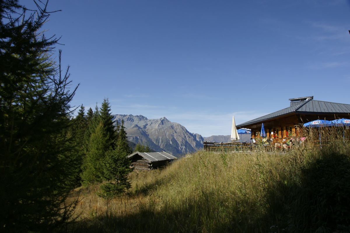 Die Lärchenalm erreicht man nach einer kurzen Wanderung über die Martanneswiesen oder über Kompatsch. Die Hütte ist sehr ruhig gelegen und bietet einen herrlichen Ausblick auf die schweizerische, österreichische und italienische Bergwelt.