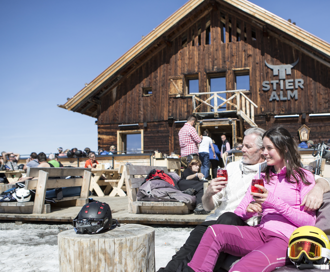 Die Lage mit perfekter Aussicht und rund 200 Sitzplätze im Innen- sowie 200 im Außenbereich garantieren einzigartiges Ambiente. Trotz Neubau blieb der Hüttencharakter erhalten, die Alm verfügt aber jetzt über jeglichen zeitgemäßen Komfort. Angenehmer Nebeneffekt für Wintersportler: Im Bereich der Almabfahrt schafft die neue Stieralm zusätzliche Pistenflächen im Ausmaß von vier Kilometern.