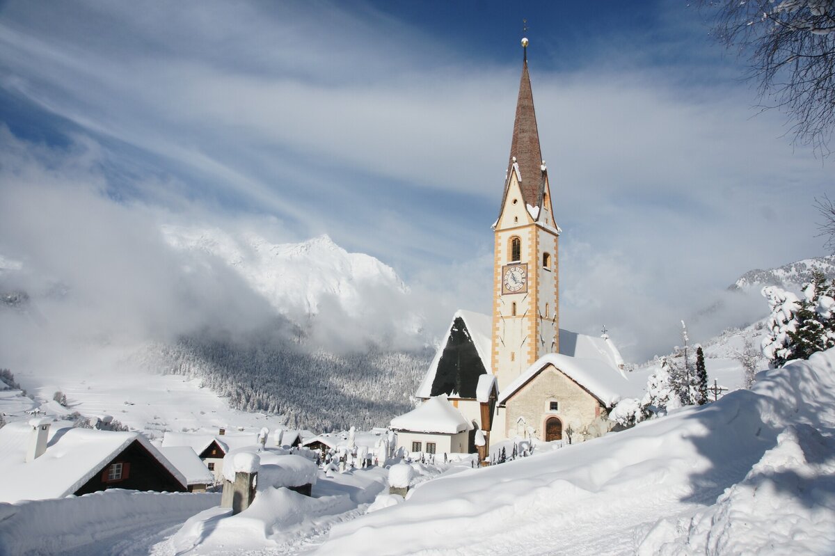 Am oberen Ende des Ortskerns steht die Valentinskirche (St. Valentin, der Apostel Rätiens), deren Vorgängerbauten seit der Christianisierung des Gebiets um 400 durch den hl. Valentin hier gestanden haben sollen. Belegt ist eine Kirchenweihe aus dem 11. Jahrhundert, als das Gebäude vergrößert wurde. Die heutige Pfarrkirche stammt von 1509 (1512 durch Weihbischof Stefan eingeweiht) und wurde später im barocken (18. Jahrhundert) und 1832 im neuromanischen Stil umgestaltet.