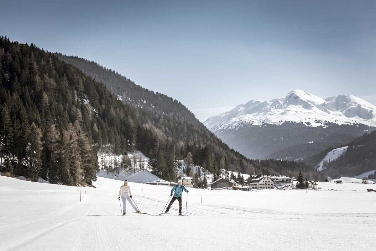 Die Loipe ist eine klassische Doppelspurloipe und führt meist über recht sanftes, teils hügeliges Gelände. Diese Loipe ist auch der perfekte Rundkurs für Anfänger und Einsteiger. Zur Einkehr lädt das Café Restaurant Arsangs an der Talstation und an der italienischen Grenze der Kiosk oder die ein oder andere Pizzeria.