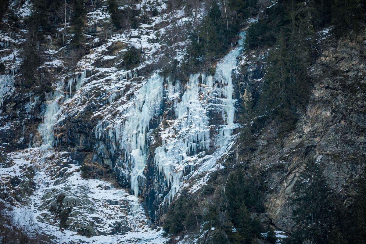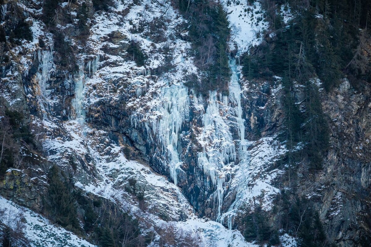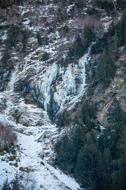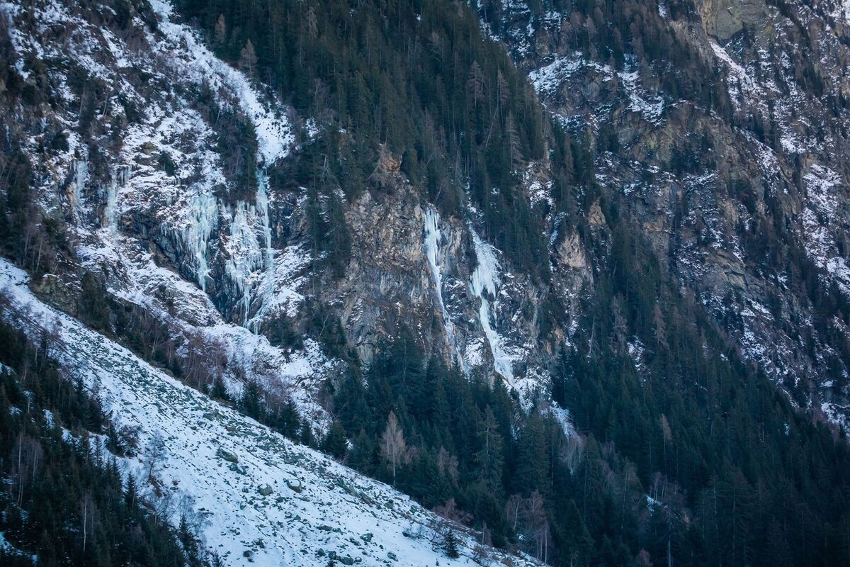 Zustieg: über einen breiten Hang in ca. 29 min. direkt unter die Eisfälle (Lawienenkegel).