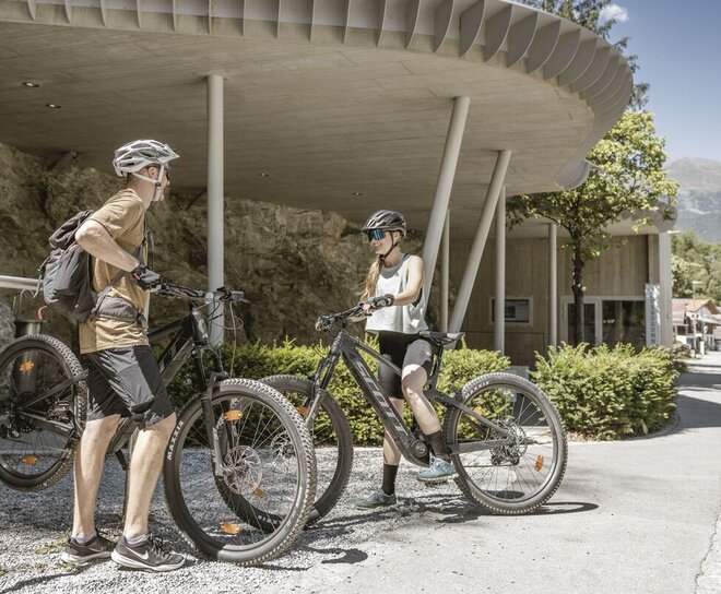 Diese Radtour führt entlang der Etsch über den Reschenpass, am geschichtsträchtigen Reschensee mit dem alten Kirchturm im See vorbei.