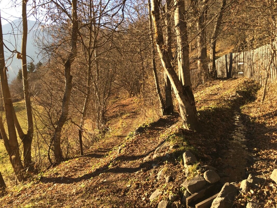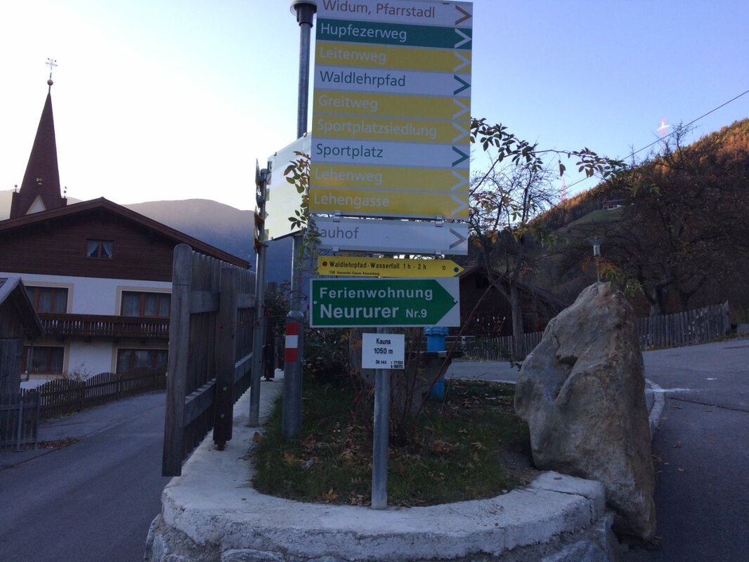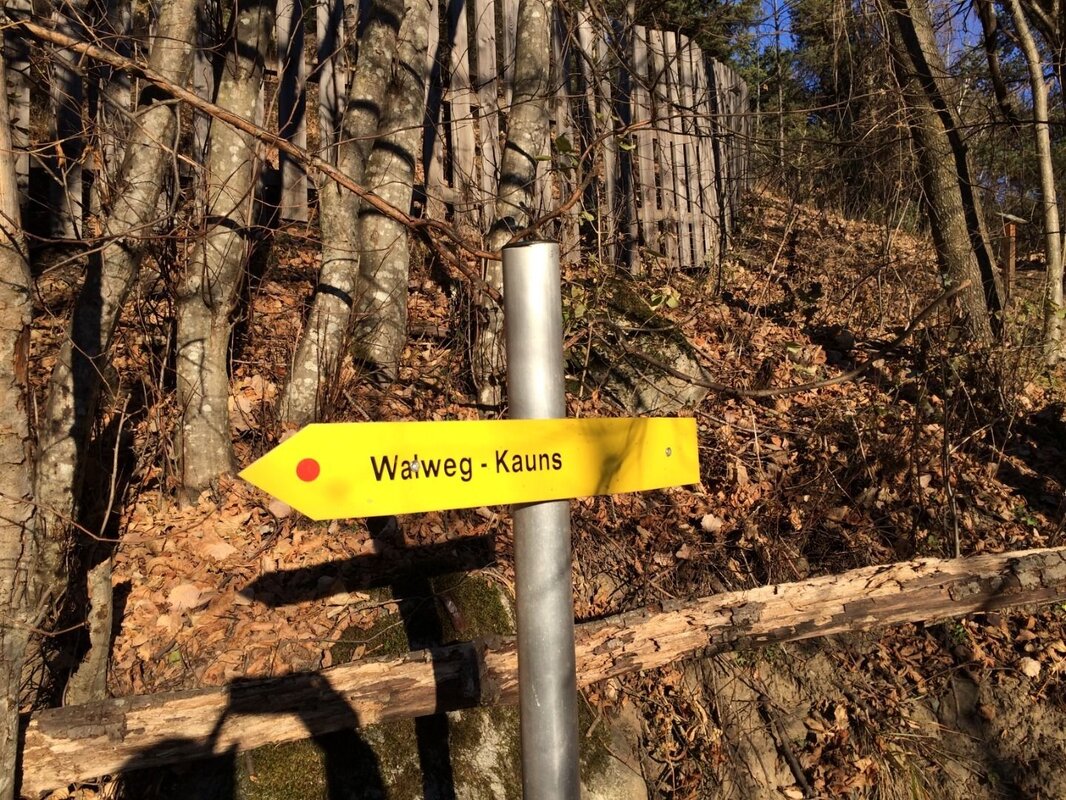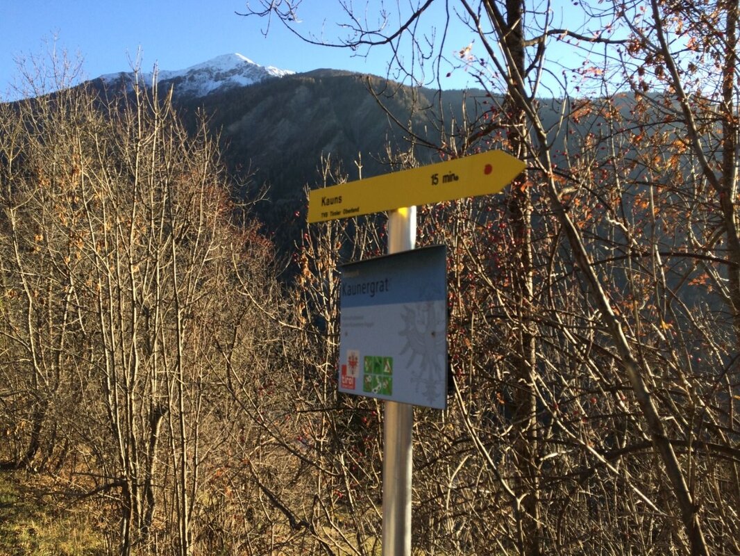 Nach dem Anstieg durch das Dorf führt der Lehrpfad kurz nach der Wildbachverbauung rechts durch einen schönen Wald bergauf. Später quert man die Straße und betritt das Weidegebiet durch ein Gatter. Während der Sommermonate kann es sein, dass man kurz darauf von neugierigen Ziegen begrüßt wird. Nun hat man bald den höchsten Punkt der Wanderung erreicht und kann die beeindruckende Aussicht auf den Kaunergrat genießen. Entlang des schön angelegten Steiges sind immer wieder interessante naturkundliche Besonderheiten zu finden. Beim Aussichtsplatz Schloßbachwasserfall führt der Weg dann bergab. Man streift kurz die Kaunerberger Straße, bleibt aber am Steig abwärts bis man schließlich auf die Hauptstraße trifft. Dieser folgt man nach rechts, vorbei an der Burg Berneck, zurück ins Dorf.