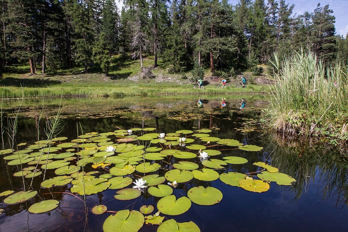 Start dieser fahrtechnisch wie konditionell sehr einfachen Tour ist bei der Bergstation der Mutzkopf Sesselbahn auf rund 1.800 m. Sie führt auf Schotter über den Schwarzsee zum Riatschhof und endet nach knapp einer Stunde bei der Talstation der Mutzkopfbahn. Herrliche Blicke auf die Nauderer und Engadiner Berge begleiten auf der 10 Kilometer langen Runde und auf der Sonnenterasse des Riatschhofs bei Tiroler Köstlichkeiten, Kaffee, Kuchen oder einem Eis an heißen Sommertagen lassen sich weitere Bike-Abenteuer entspannt planen. Die Abfahrt zur Talstation und somit dem Ende der Tour ist auf dem asphaltierten Fahrweg oder einem der anfänger- und familienfreundlichen (Enduro-)Trails möglich.