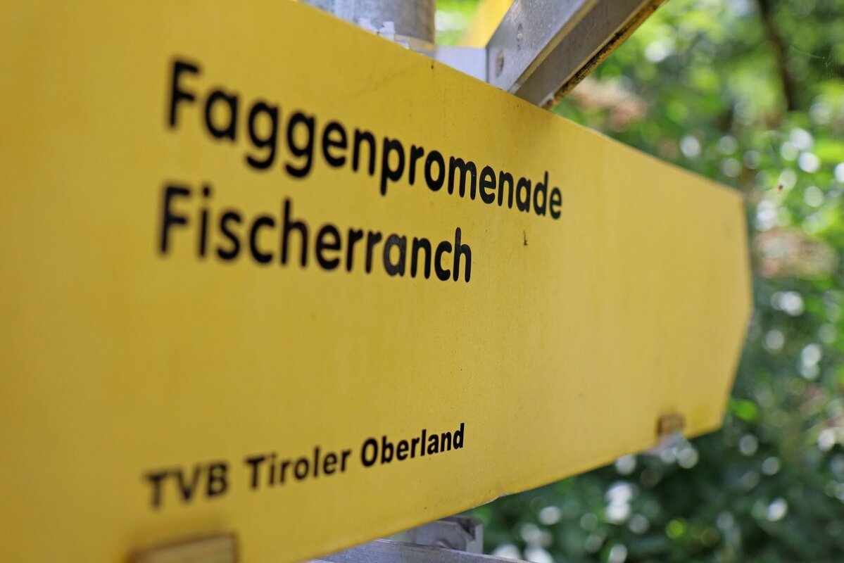 Folgen Sie in Prutz der Hintergasse und der Dorfstraße bis zum "Küchenstudio". Anstieg über den alten Fendler Weg bis von links ein Forstweg einmündet. Folgen Sie diesem bis zur Fendler Landesstraße. Überqueren Sie schräg abwärts die Landesstraße und folgen dann dem Leitenwaldweg bis zum Abstieg zur Kaunertaler Landesstraße. Auf dem Weg zwischen Landesstraße und Faggenbach erreichen Sie die "Fischer Ranch". Rückweg am anderen Ufer bis nach Faggen.