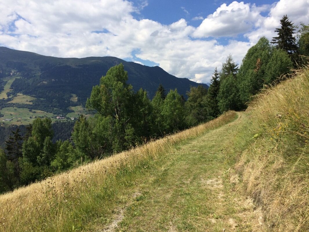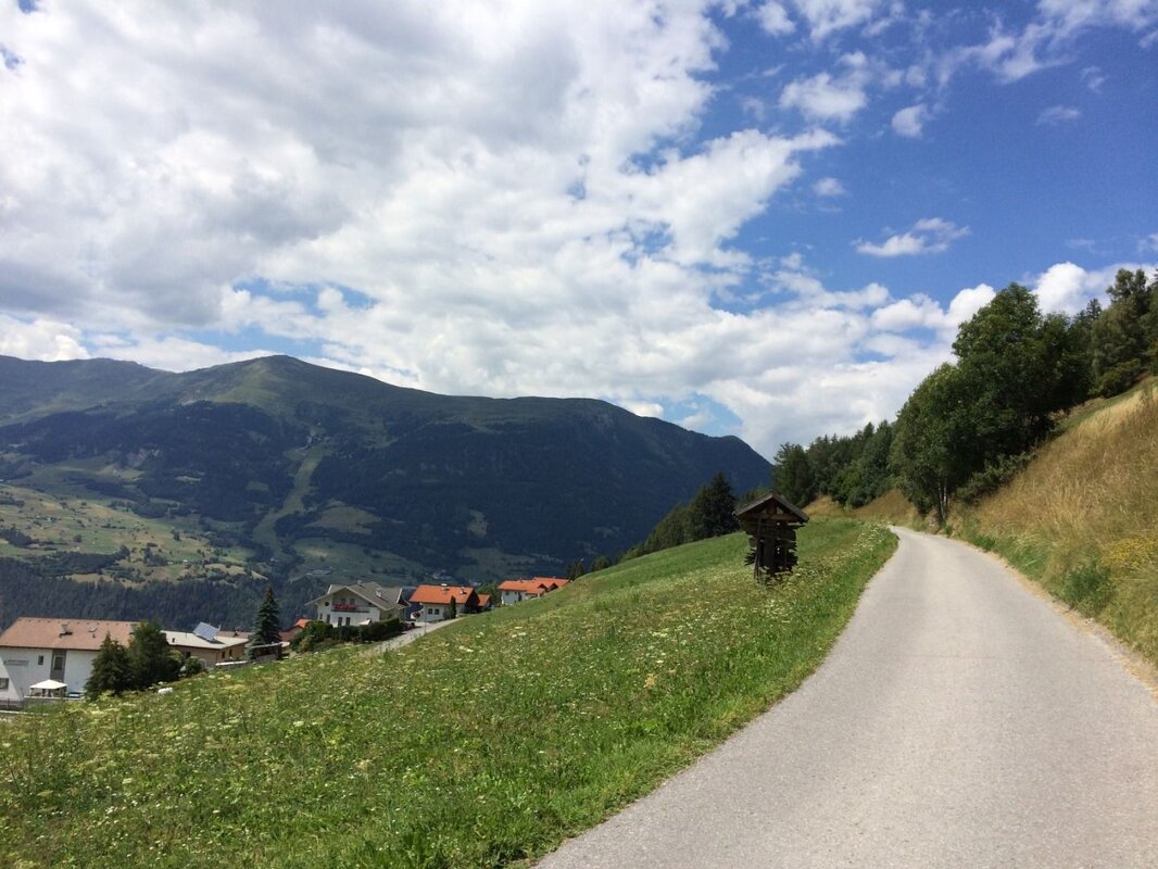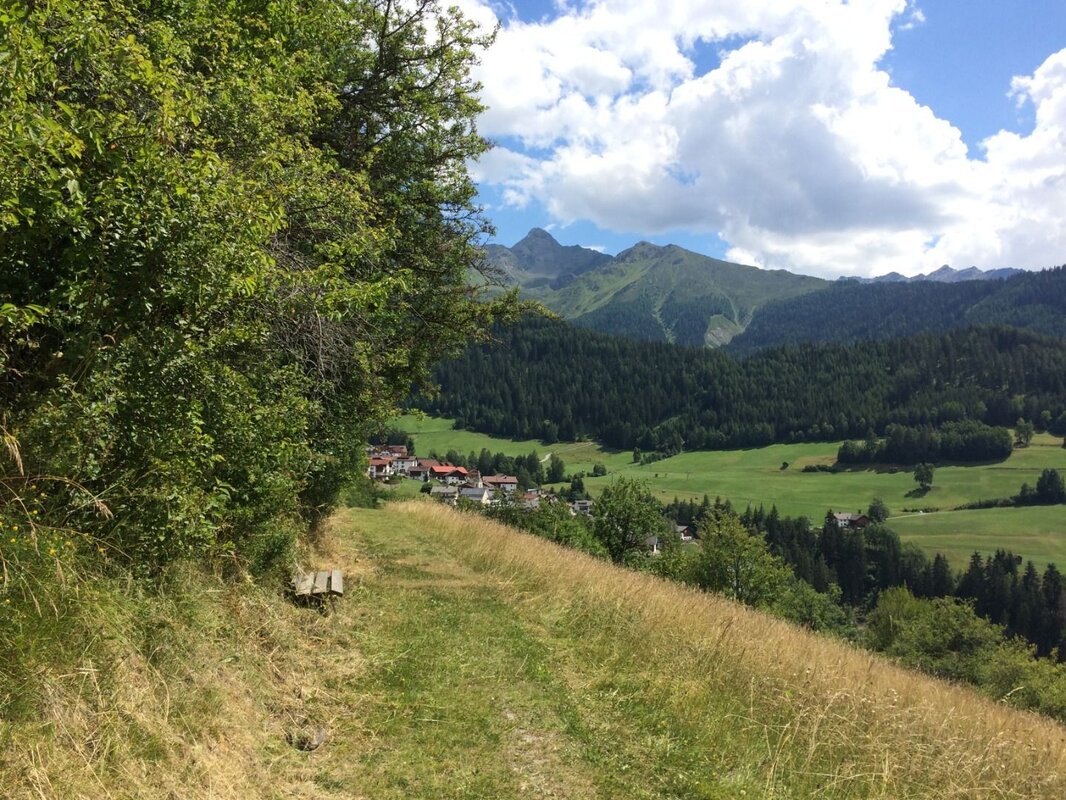 Man folgt der Straße aufwärts und kommt nach etwa 200 Metern zur Weggabelung an der Kapelle. Von dort folgt man der Beschilderung nach links. Nach einem kurzen Anstieg, führt der Weg annähernd flach weiter und so spaziert man, bei herrlichem Blick auf das Inntal und die gegenüberliegende Samnaungruppe, über dem Dorf dahin. Beim Recyclinghof angekommen, trifft man auf eine Straße. Dieser folgt man kurz abwärts, bis die Rundwanderung nach rechts in einen wunderschönen Wiesenweg abzweigt. Heckensäume und Trockenrasen bieten hier noch Lebensraum für viele Tiere und Pflanzen, darunter auch einige seltene Vogel- und Schmetterlingsarten. Bei einer idyllisch gelegen Bank führt der Weg leicht abwärts, macht dann eine 180-Grad-Kurve und wendet sich wieder in Richtung Dorf. Man erreicht die ersten Häuser des Dorfs und bald auch die Fendler Straße, welcher man kurz aufwärts folgt und in der nächsten Kurve rechts abbiegt. Nach der Brücke gelangt man zum Schigebiet und hat, bei einem Blick zurück, nun wieder eine neue Perspektive auf das Dorf und den absolvierten Weg. An der nächsten Abzweigung geht es links zur Seilbahn sowie zum Parkplatz zurück. Dabei kommt man zum Abschluss noch unterhalb des schönen Naturspielplatzes "Bach am Moos" vorbei, den die Kids auf keinen Fall verpassen dürfen.