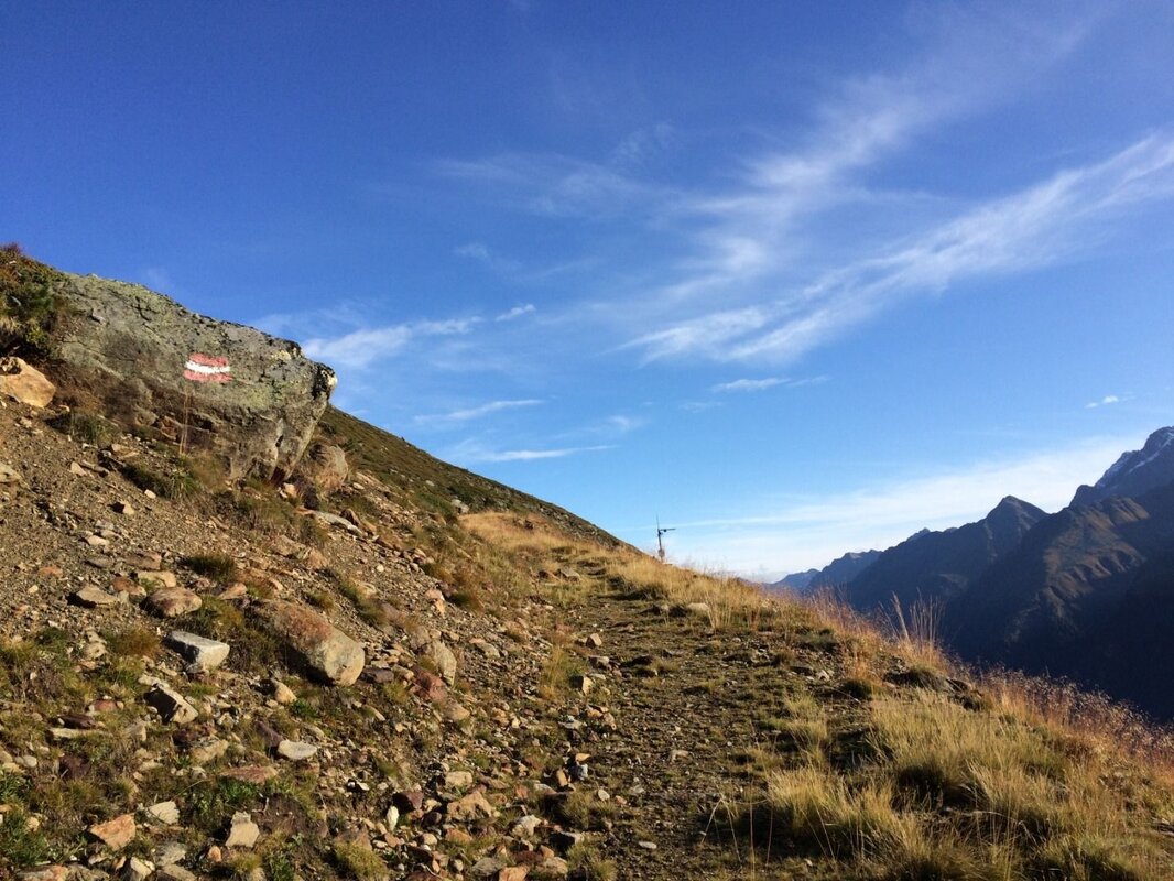 Direkt vor dem Stall der Nassereinalm (2.041 m), steigt man über undeutliche Wegspuren rechts über die Weidefläche bergauf und gelangt auf den oberhalb sichtbaren Karrenweg. Auf diesem wandert man weiter bergauf, bis man den gelben Wegweiser auf 2.140 m erreicht hat. Hier folgt man der Beschilderung zum Schwarzsee nach links und gewinnt so über mehrere Kehren schnell an Höhe. Da diese Tour bereits von Beginn an oberhalb der Waldgrenze verläuft, hat man das Glück, auf jedem Schritt von einem einzigartigen Panorama begleitet zu werden. Auch die Morgensonne ist in dieser Höhenlage meist angenehm und nicht zu heiß.