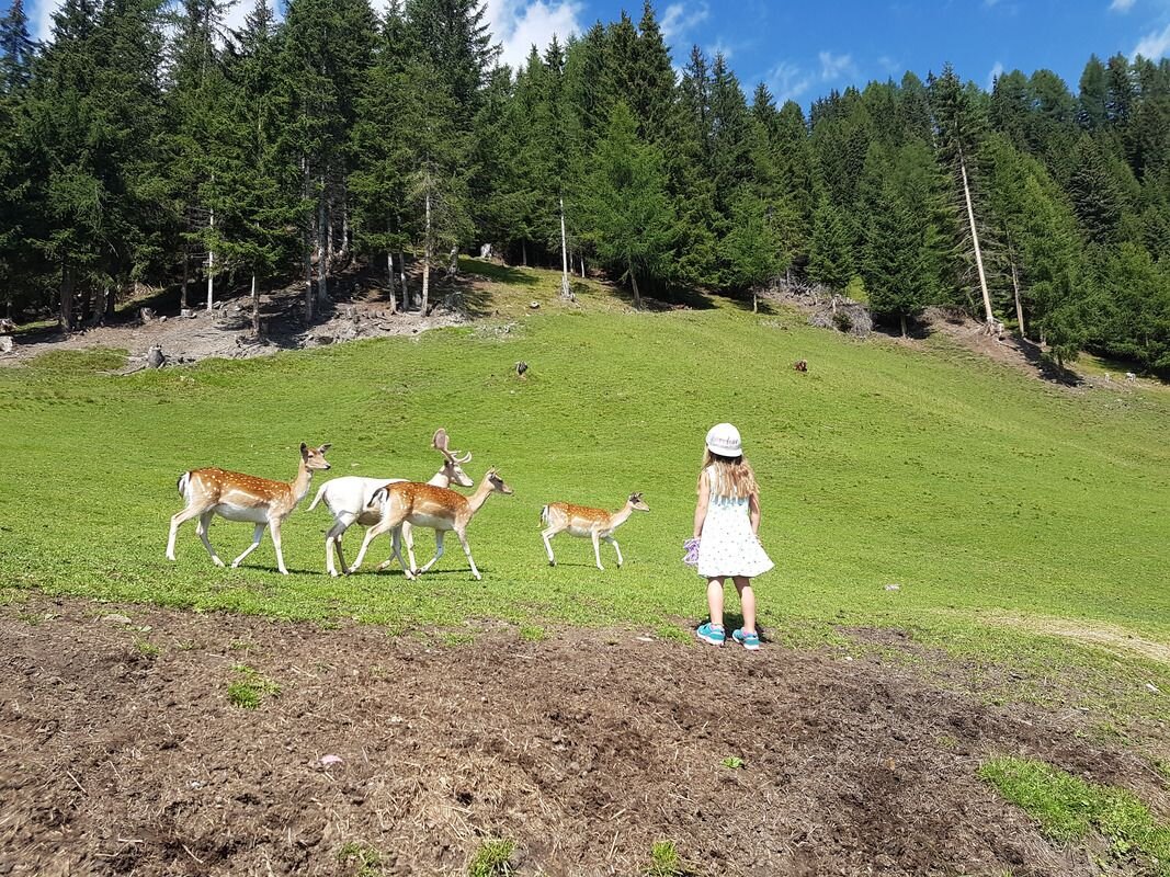 Fahrt von Pfunds auf den Kobl bis zum Parkplatz Kobler Alm. Vom Parkplatz geht es wieder ein stücken zurück auf dem Fahrtweg, von dort zweigt links ein Weg in den Wald der zum Wildtiergehe führt.