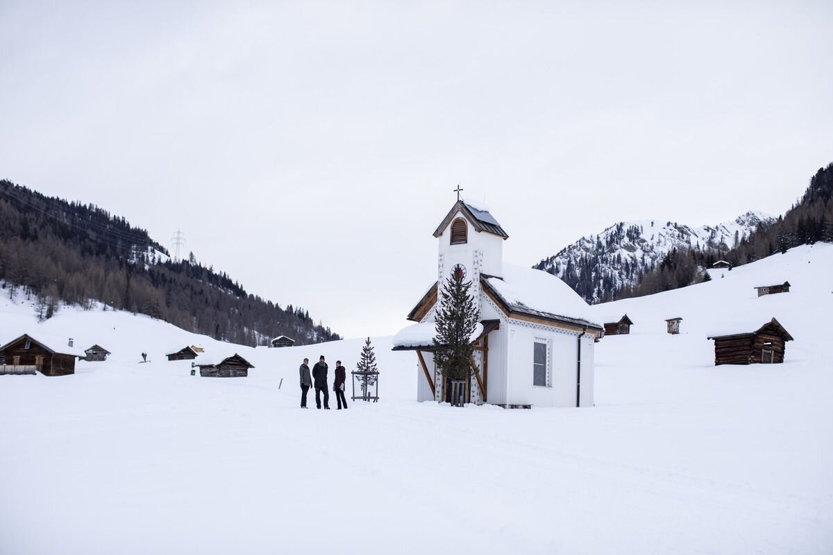 Fahrmöglichkeit von Pfunds Dorf über Greit bis zum Parkplatz Tscheylücke (Kreisverkehr). Von dort führt uns der leichte Winterspaziergang durch die schöne Landschaft der Tscheywiesen bis zur Kapelle Maria Schnee.