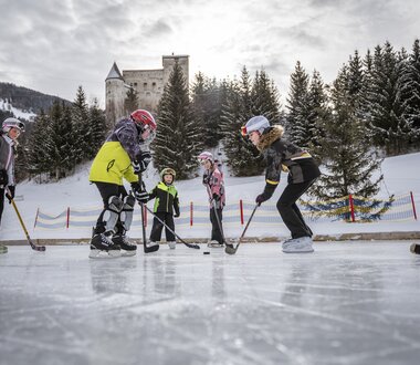Die 16.000 m2 große Schnee- und Eisfläche sorgt für viel Freiraum in einer tollen Winterkulisse unterhalb vom Schloss Naudersberg.