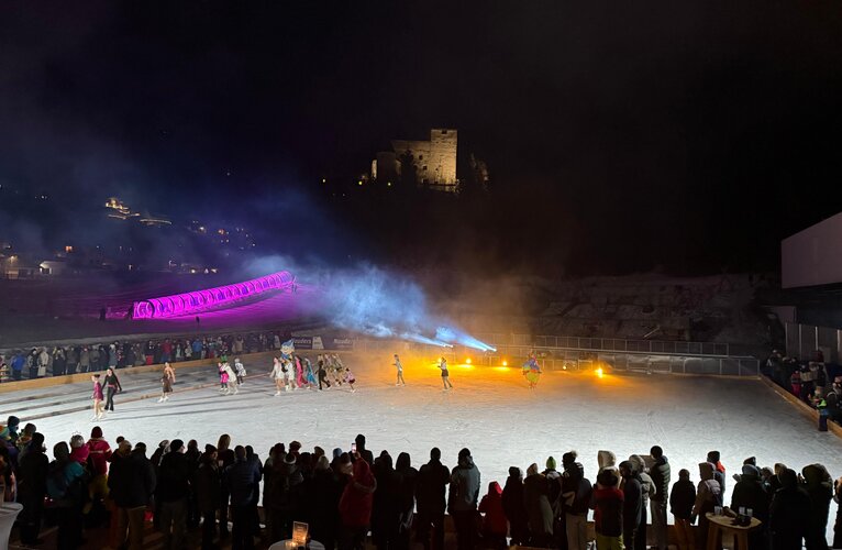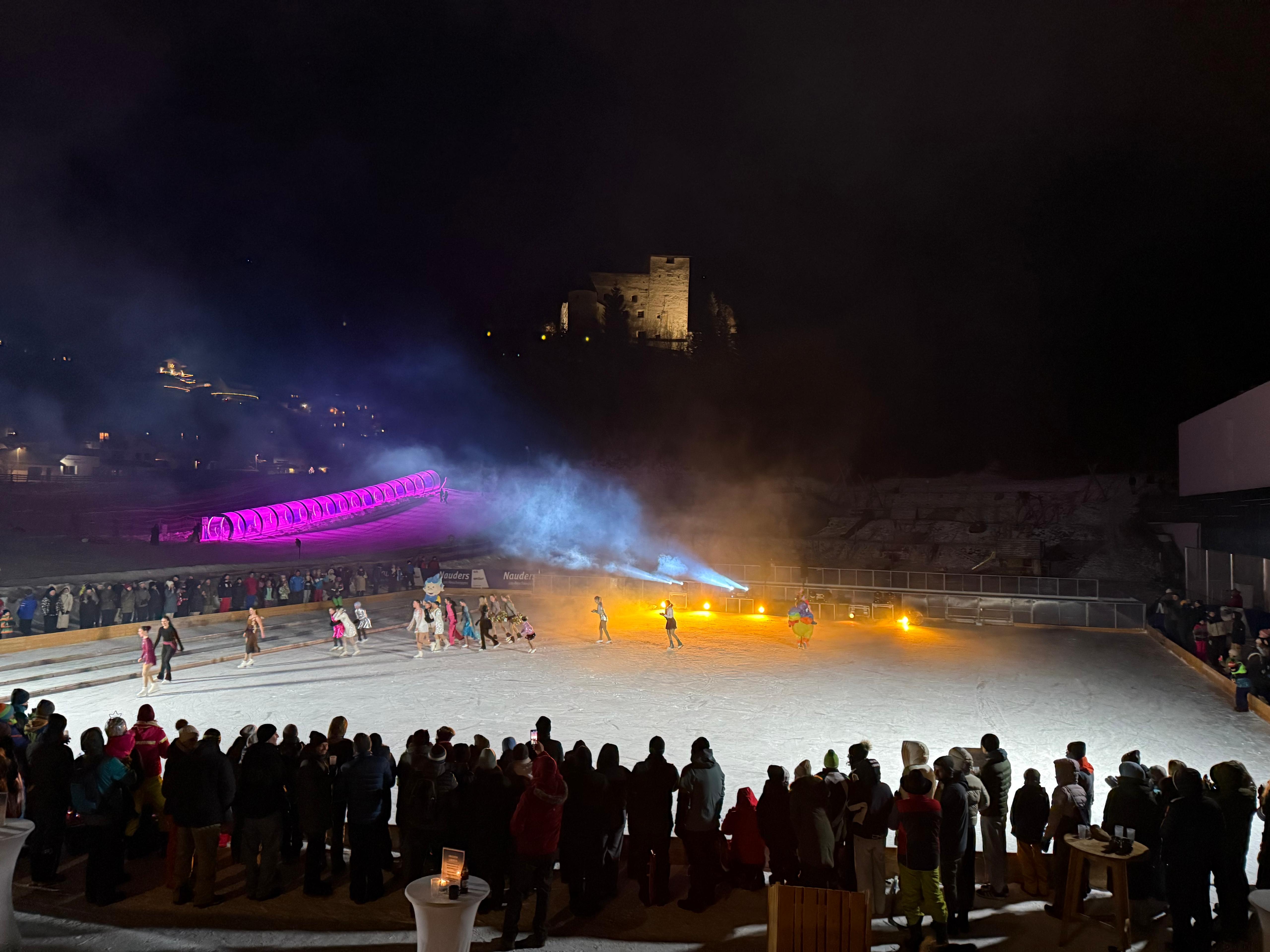 Bereits zum dritten Mal verwandelte sich die Winter.Wunder.Welt Nauders am vergangenen Montag, dem 05. Jänner, in eine glitzernde Showbühne für das außergewöhnliche Eislauf-Event „Frozen Lights“. Unter dem Motto „Movie Magic meets Disco Beats“ erlebten rund 1.000 Besucherinnen und Besucher vor der beeindruckenden Kulisse des Schlosses Naudersberg eine mitreißende Mischung aus Filmklassikern, Disco-Sounds, Eiskunstlauf und spektakulären Lichteffekten – und das trotz klirrender Kälte mit zweistelligen Minusgraden.
