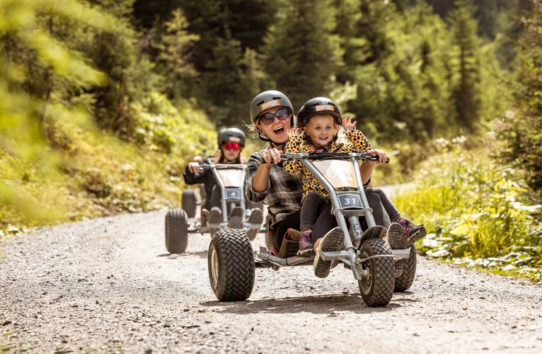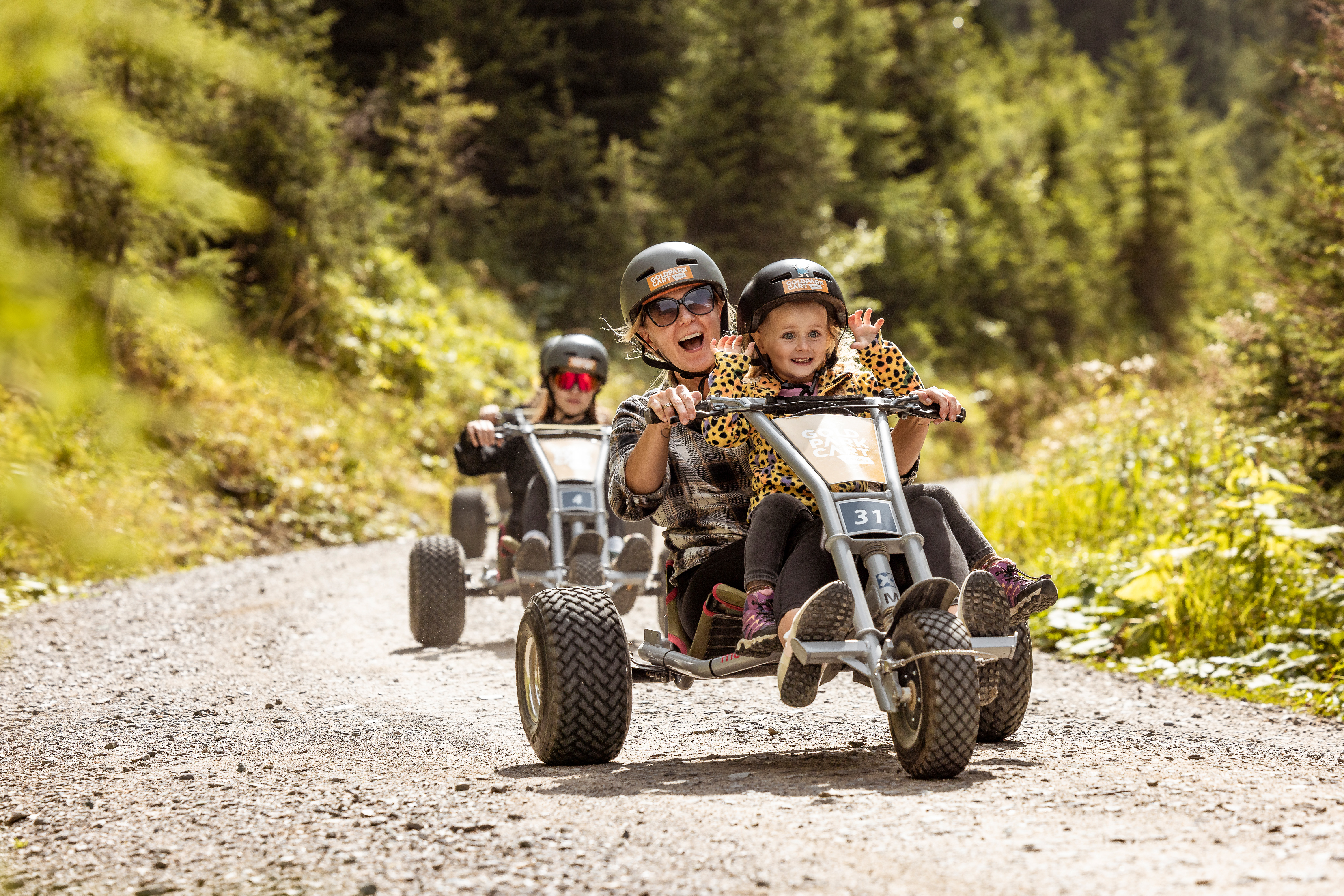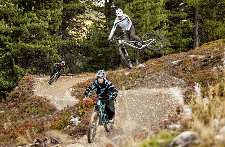 Was gibt es noch alles für Biker? An der Talstation Bergkastel lockt ein vielfältiges Angebot: In der Bag-Jump Area mit zwei neuen Jump-Bags übt man coole Sprünge und verfeinert seine Skills. Der jährlich neu gestaltete Technikparcours und der Bike Parcours Billy's sind ideal für erste Trainingsrunden, um gezielt an der Fahrtechnik zu feilen. Darüber hinaus gibt es den Einsteiger-Pumptrack, der direkt am Radweg oberhalb der Talstation liegt. Gut zu wissen: Bei einer Fahrt muss es nicht bleiben, mit der Goldseebahn geht es nach einem adrenalingeladenen Run in nur drei Minuten zurück zum Start.