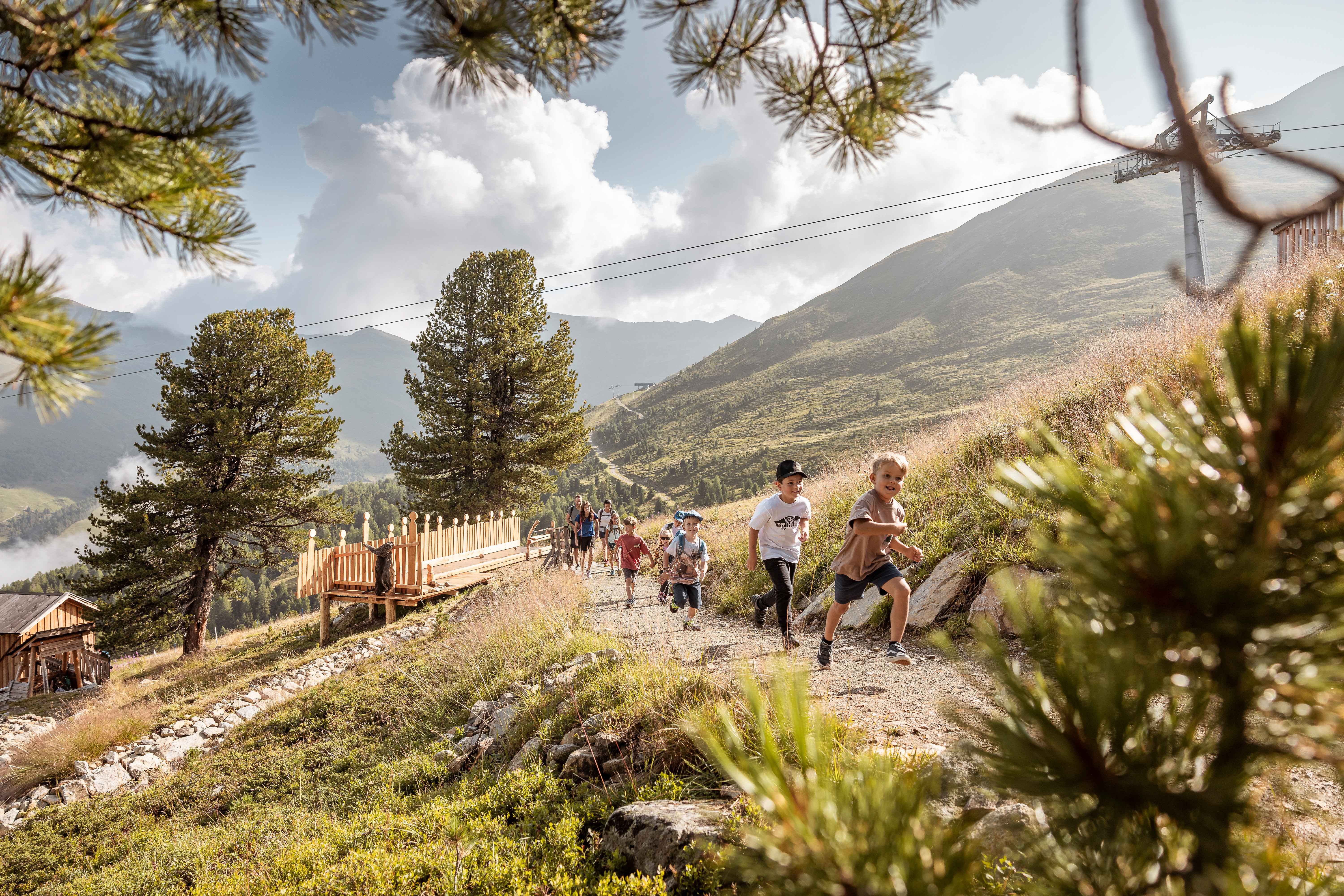 Wenn die Goldseebahn ab 7. Juni ihren Sommerbetrieb startet, erschließt sich für die Sommerurlauber ein attraktives Angebot am Bergkastel-Areal: Ganz bequem geht es mit der Bahn unter anderem zum brandneuen Goldwaldweg. Ein Rundwanderpfad, der sich besonders für Familien mit Kindern eignet. Er wurde so konzipiert, dass er selbst mit dem Kinderwagen befahrbar ist. Entlang des Goldwaldwegs warten schöne Naturerlebnisse und Rastplätze mit traumhaften Aussichten. Ein weiterer Tipp ist der abwechslungsreiche Wanderweg über die Bullzone zur Stieralm. Von dort geht es weiter zur Talstation der Goldseebahn, die die Gäste zurück zur Bergstation Bergkastel bringt. Hier kann man noch die Umgebung auf weiteren Wanderrouten oder die zahlreichen Spiel- und Erlebnisbereiche für Kinder erkunden.