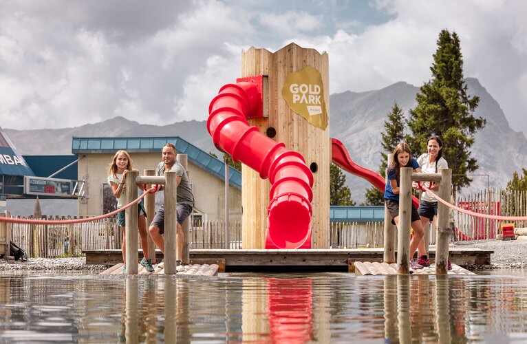 Neben den Neuheiten bietet der Goldpark auch seine bewährten Attraktionen: Goldwaschen, Floßfahren, die Bike Base Bergkastel und die liebevoll gestaltete Miniatur-Wasserwelt Goldwasser – mit Rutschenturm, Baumkarussell und Piratenschiff. Zudem sorgen die Bullzone Nauders mit dem Rätselweg und dem Fit Bull Fitness-Parcours, die Goldparkcarts sowie der innovative Goldgrat-Klettersteig für vielfältige Abenteuer. Mit der Goldpark Card oder Goldpark Family Card erhalten Gäste (nicht nur) hier attraktive Vorteile und Ermäßigungen.