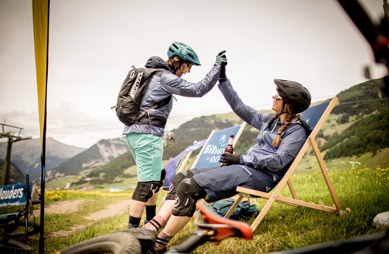 Flowige Trails, atemberaubendes Bergpanorama und optimale Wetterbedingungen zum Start in die neue Bike-Saison: Auch in diesem Jahr fand das legendäre MTB Opening Testival Green Days am Reschenpass wieder statt. Vom 26. bis 29. Mai 2022 gab es an der Bergkastelbahn in Nauders ultimativen Bike-Spaß für Jung und Alt. Mehr als 1.500 Bikerinnen und Biker pro Tag aus Deutschland, Italien, Österreich und der Schweiz kamen voll auf ihre Kosten – ein voller Erfolg für die Region. Dabei präsentierte sich das Singletrail-Eldorado im Drei-Ländereck erneut von seiner besten Seite. Die Bergbahnen Bergkastel, Haideralm, Schöneben und Mutzkopf garantierten einen reibungslosen Transport zu Sonderpreisen und ermöglichten dadurch maximalen Trailspaß. Auf dem Rahmenprogramm standen geführte Experience Rides und Basic Fahrtechnik-Trainings mit Local Guides. Neben der sportlichen Action boten die Top-Aussteller der Branche spannende Ein- blicke in die neuesten Errungenschaften der Bereiche Material und Equipment. Die Expo befand sich neben dem Seilbahncenter der Bergkastelbahn und hielt alles bereit, was das Radsportherz begeistert – BH Bikes, Simplon, adidas Five Ten, CamelBak und Garmin waren vertreten. Weitere Marken begrüßten die ersten zweihundert Teilnehmerinnen und Teilnehmer mit nützlichen Items rund ums Bike im hochwertigen Goody Bag. Die Lounge von Bitburger Alkoholfrei am Nachmittag und die verschiedenen Veranstaltungen am Abend boten den angereisten Bikerinnen und Bikern vielfältige Möglichkeiten zum Austausch in entspannt sommerlicher Atmosphäre. Ein Highlight waren die Auftritte der zwei regionalen Bands Saltbrennt und Hatcheck in Billy’s Bike Lounge, die für einen perfekten Abschluss nach einem sonnigen Tag auf den Trails sorgten. Junge Besucherinnen und Besucher tobten sich auf dem Pumptrack und Kidsparcours aus, welche nun die ganze Saison geöffnet sind.