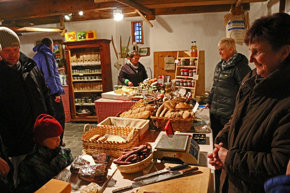 Die Produktpalette reicht vom köstlichen Bauernbrot über hausgemachte Marmeladen und Säfte, Honig, Schnäpse und Liköre, verschiedene Käsesorten, Speck, Kuchen, Kräuter und Gewürze, Zirben- und Bergheupolster bis hin zu netten handgemachten Souvenirs.