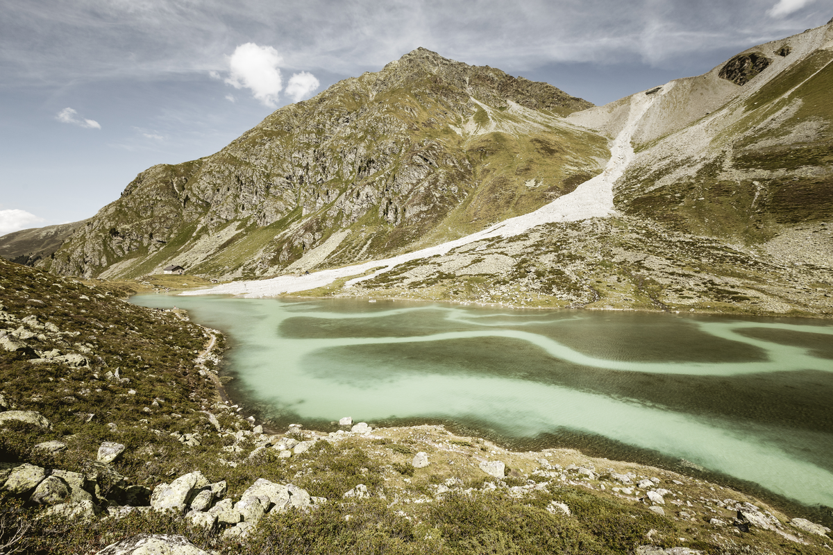 Ein ganz besonderes Naturjuwel wartet im Radurschltal - ein smaragdfarbener Bergsee, der sich erst unlängst durch einen Murenabgang auf 2.200 Metern Höhe gebildet hat. Abzuschätzen ist daher nicht, wie lange uns dieses Naturjuwel in seiner bestehenden Größe von zwei Fußballfeldern noch erhalten bleibt. Der Smaragdsee ist Teil der wunderschönen Wanderung zum Hohenzollernhaus mit Start- und Endpunkt am Parkplatz Wildmoss im Radurschltal. Die für Familien geeignete Wanderung zum Hohenzollernhaus mit dem Bergsee dahinter verläuft entlang des rauschenden Raduschlbachs und vorbei am Skulpturenpark mitten im Zirbenwald.