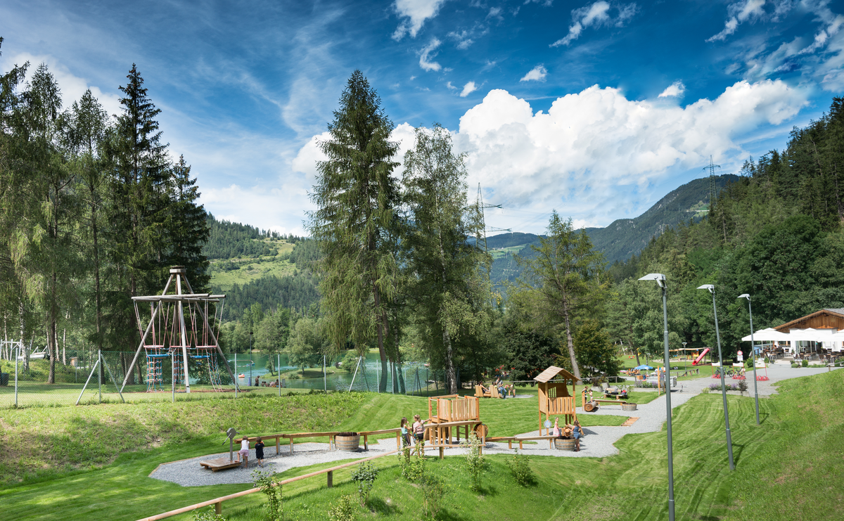 Der Erlebnisplatz befindet sich angrenzend zum nahegelegenen Badesee Ried.
