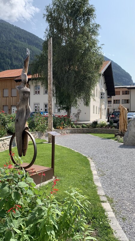 • Die beiden Skulpturen wurden aus heimischem Holz, von zwei Pfundser Künstlern geschaffen.