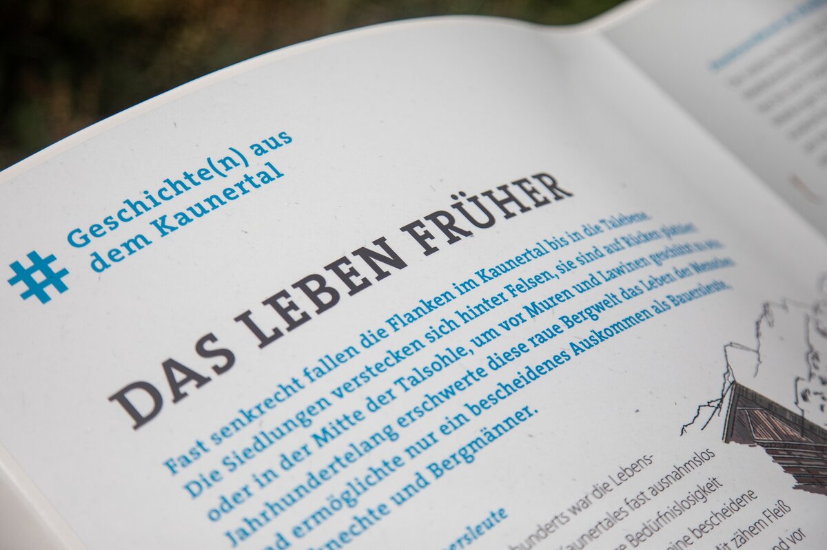 Entdecken Sie bei einer Wanderung oder einem Spaziergang die Vergangenheit des Kaunertales. Überdimensionale Bücher erzählen spannende Ereignisse und Geschichten aus einer längst vergangen Zeit. Entlang beliebter Spazier- und Wanderwege im Tal finden Sie informative Wissens-Stationen.