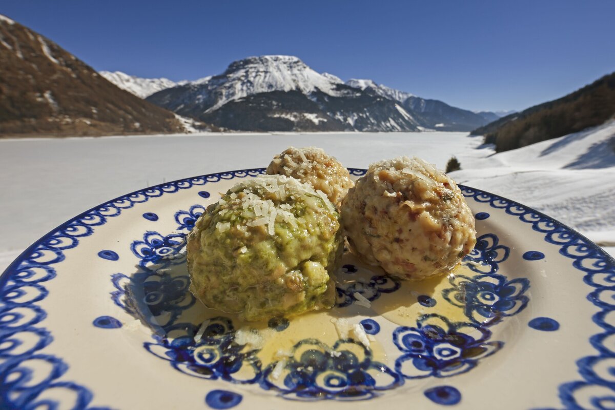 Der Bio-Bauernhof auf rund 1.500 Metern mit Hofschank und Ferienwohnungen liegt direkt am Reschensee und bietet Ihnen somit eine atemberaubende Kulisse