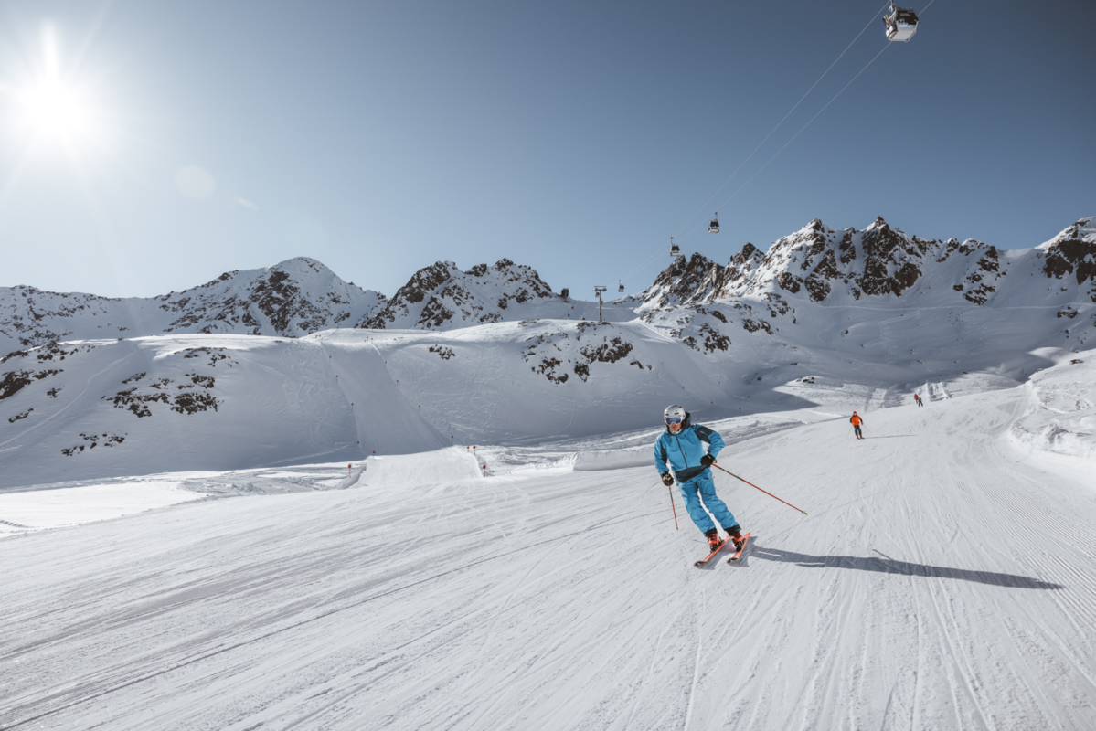 Der Gletscher bietet Schneesicherheit von Oktober bis Juni. Auf breiten, nicht überfüllten Pisten findet jeder Platz für seine Schwünge.
