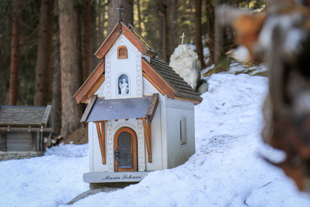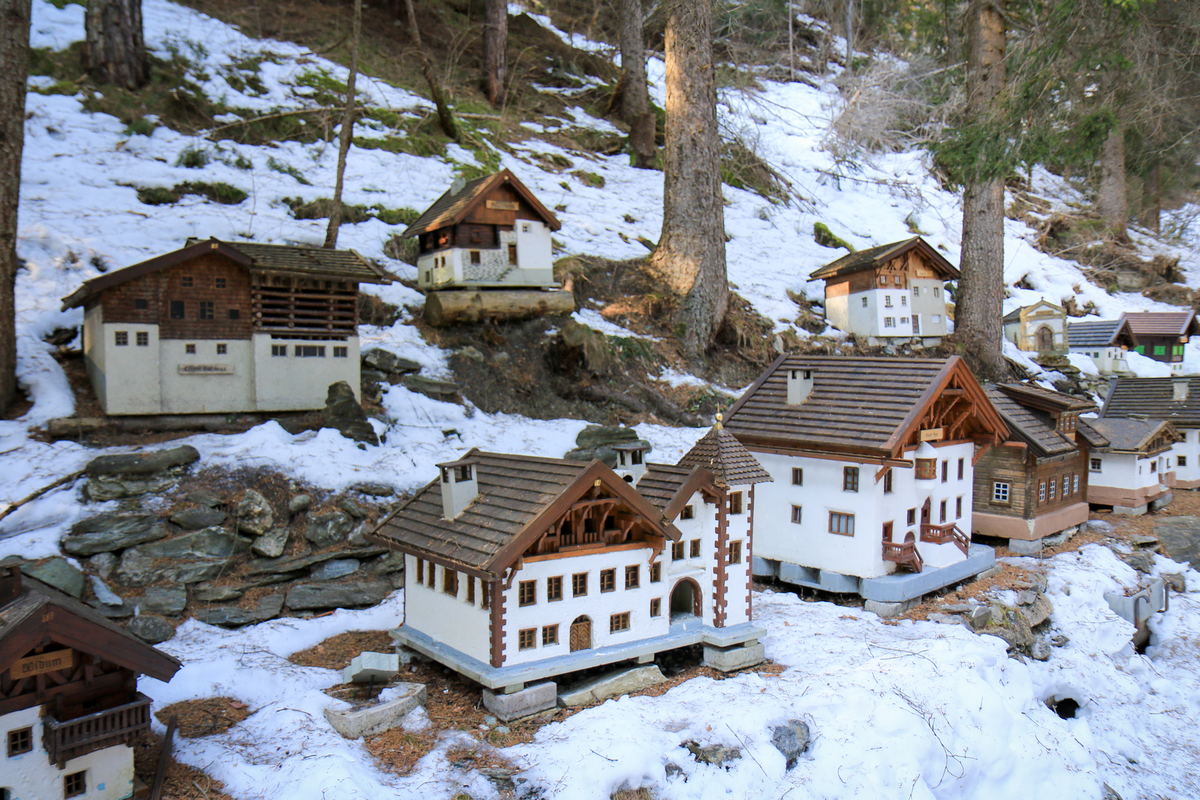 Direkt an der Via Claudia Augusta wurden in liebevoller Arbeit, einige Bauwerke aus Pfunds im Kleinformat nachgebaut. So ist ein wahres Mini-Dorf entstanden. Die Wassertretanlage wurde direkt nach dem Mini-Fundus (in Richtung Kajetansbrücke) angelegt. Fuß- & Armbecken bieten eine wunderbare Erfrischung für müde Wanderbeine.
