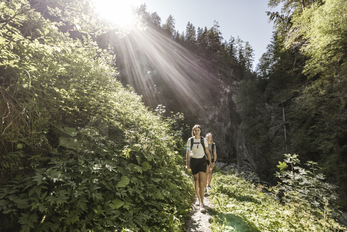 Eine der beliebtesten Wanderungen ist der wildromantische Klammsteig, wo nicht nur seltene Farne und Gräser beheimatet sind. Man startet beim Kreisverkehr im Ortsteil Dorf und folgt dem Radurschlbach flussaufwärts. Der Weg wird immer schmäler und führt über viele Brücken, sogar über eine Hängebrücke, vorbei an Felsüberhängen und ständig in Begleitung vom Klang des tosenden Wassers. Ein Tipp besonders an heißen Sommertagen - die Luftfeuchtigkeit entlang dieser Schluchtenwanderung ist sehr erfrischend. So gut wie am Ende der Klamm kann man sich spontan für den Rückweg über Greit oder über den Radurschlweg entscheiden. Zum Weiler Greit folgt ein kleiner Aufstieg, wo der Berghof (Restaurant Do. & So.) zur stärkenden Einkehr einlädt. Parkmöglichkeiten finden Sie beim Kreisverkehr Pfunds (keine Parkmöglichkeit direkt bei der Schlucht).