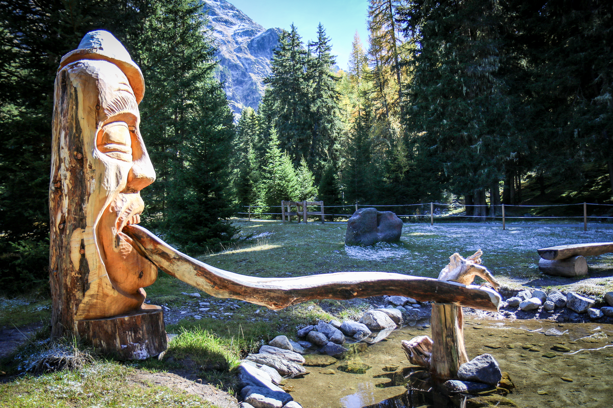 Bereits im Jahr 2002 ist das Projekt „Skulpturenpark im Zirbenwald „entstanden - im Sommer 2017 wurde er wieder fleißig erweitert. Zahlreiche Skulpturen aus Zirbenholz, ein Grillplatz am kleinen Bergsee und eine originalgetreue Rindenhütte versprechen einen wunderschönen Tag im Zirbenwald. Der Skulpturenpark ist in knapp einer Stunde Gehzeit vom Parkplatz Wildmoos erreichbar. In unmittelbarer Nähe befindet sich die Radurschlalm für einen Einkehrschwung. Wer noch Kraft in den Beinen hat, kann zur urigen Alpenvereinshütte Hohenzollernhaus aufsteigen. Tipp: jeden Dienstag fährt der Wanderbus ins Radurschl!