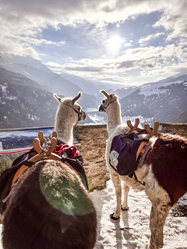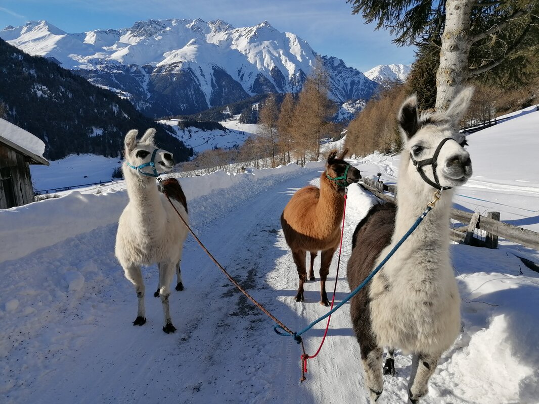 Each week you are invited to a relaxed llama trek in Nauders. On each trek, you will guide the lama by the halter, discovering interesting facts about the origins and distinctive features of these animals.